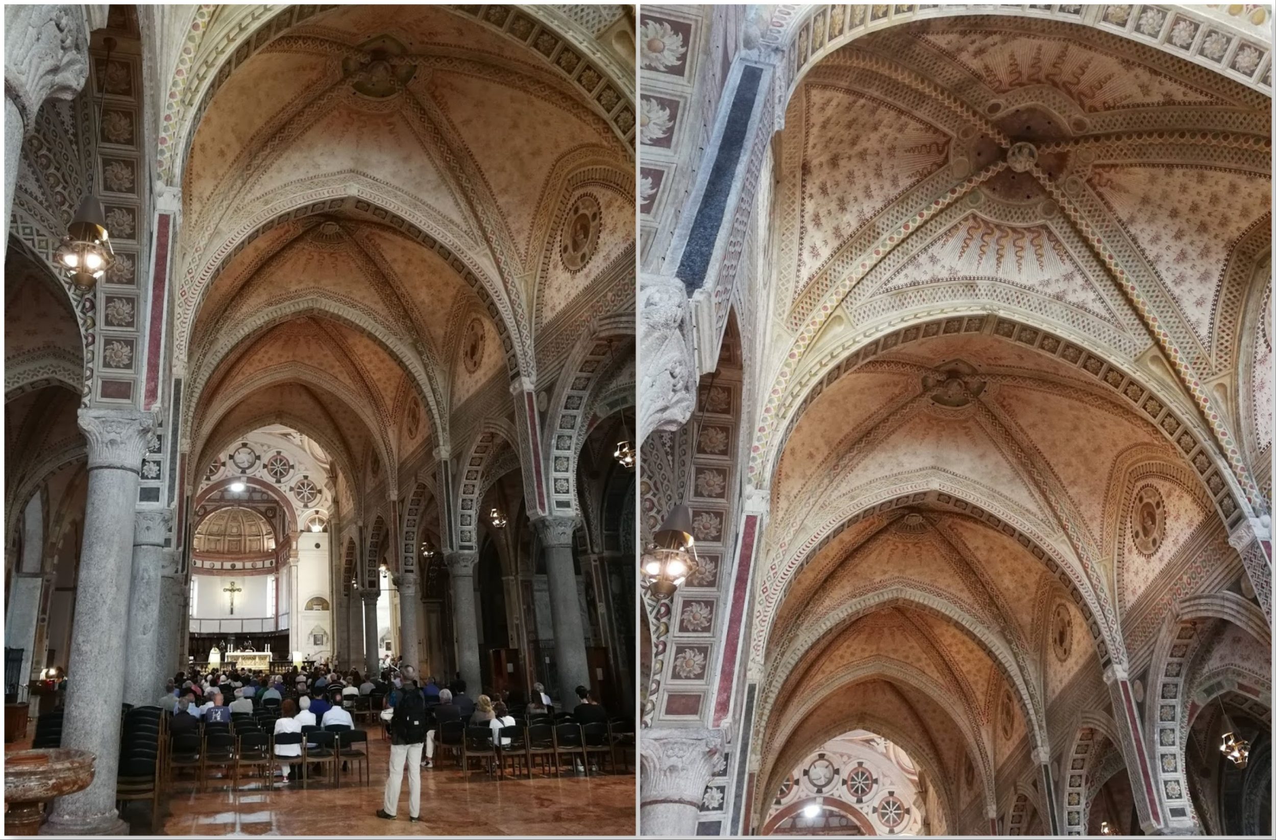 Y vaya enseguida a la iglesia de Santa Maria Delle Grazie para esperar comprar una entrada para ver la Cena de Leonardo da Vinci (de la que tenemos una copia en el Louvre). Desgraciadamente, al llegar a las 9.15 horas, ya es demasiado tarde. La vendedora nos informa de que deberíamos haber reservado los billetes con antelación o venir a las 8 de la mañana (para comprar los billetes anulados)