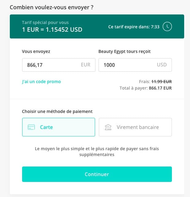 Así que estoy pensando en recurrir a la solución Transferwise, que nunca he utilizado antes pero de la que he oído hablar muy bien. Nuevo problema: no puedo enviar dólares a Egipto, sólo está disponible la moneda local (la libra egipcia).