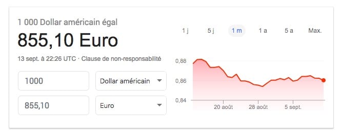 Por lo tanto, estamos estudiando la posibilidad de hacer una transferencia con nuestros bancos «tradicionales» (Société Générale y Boursorama), pero los costes son elevados: 35 euros de gastos sólo por la transferencia fuera de la zona SEPA, a los que habrá que añadir gastos de cambio y comisiones (cuyos importes no están muy claros).