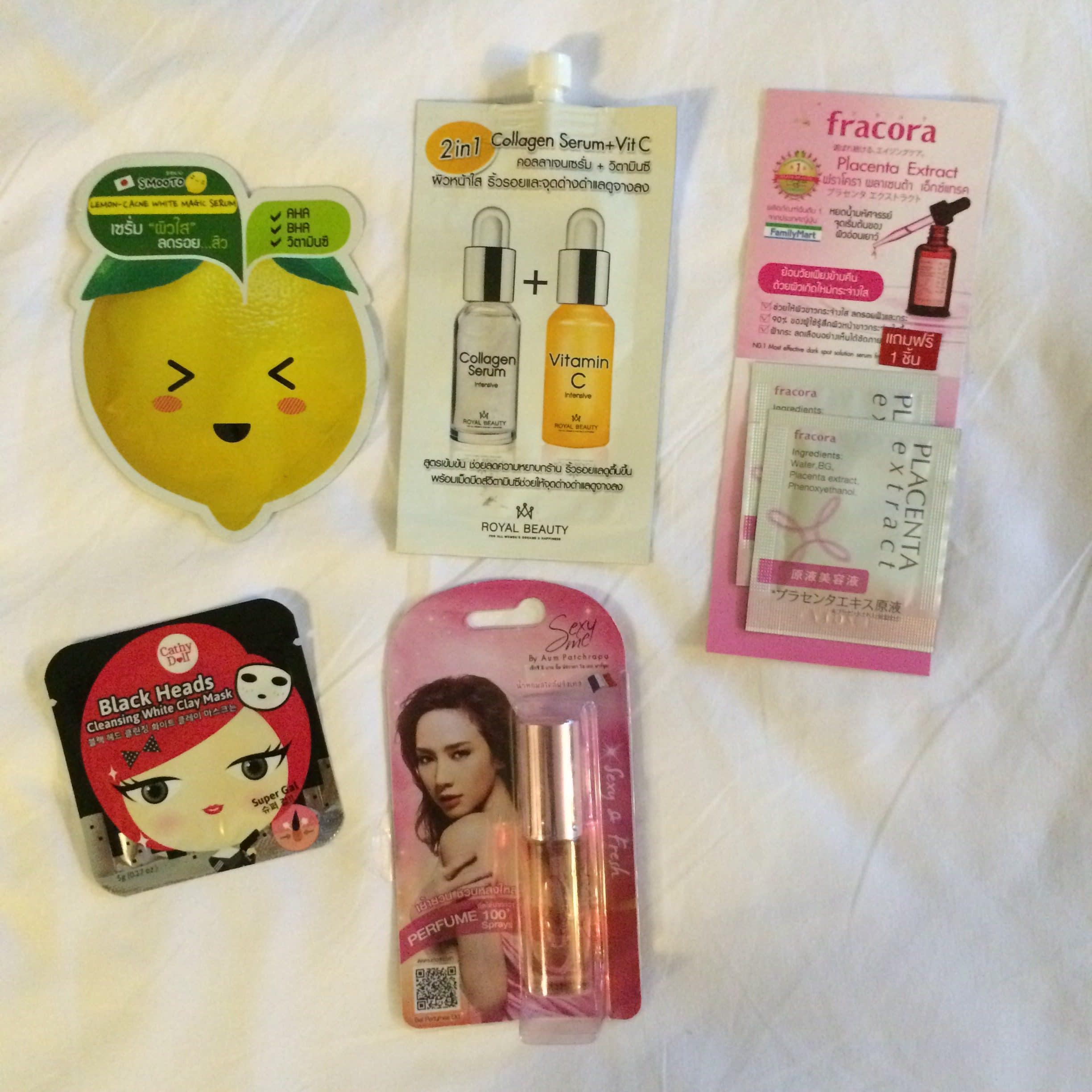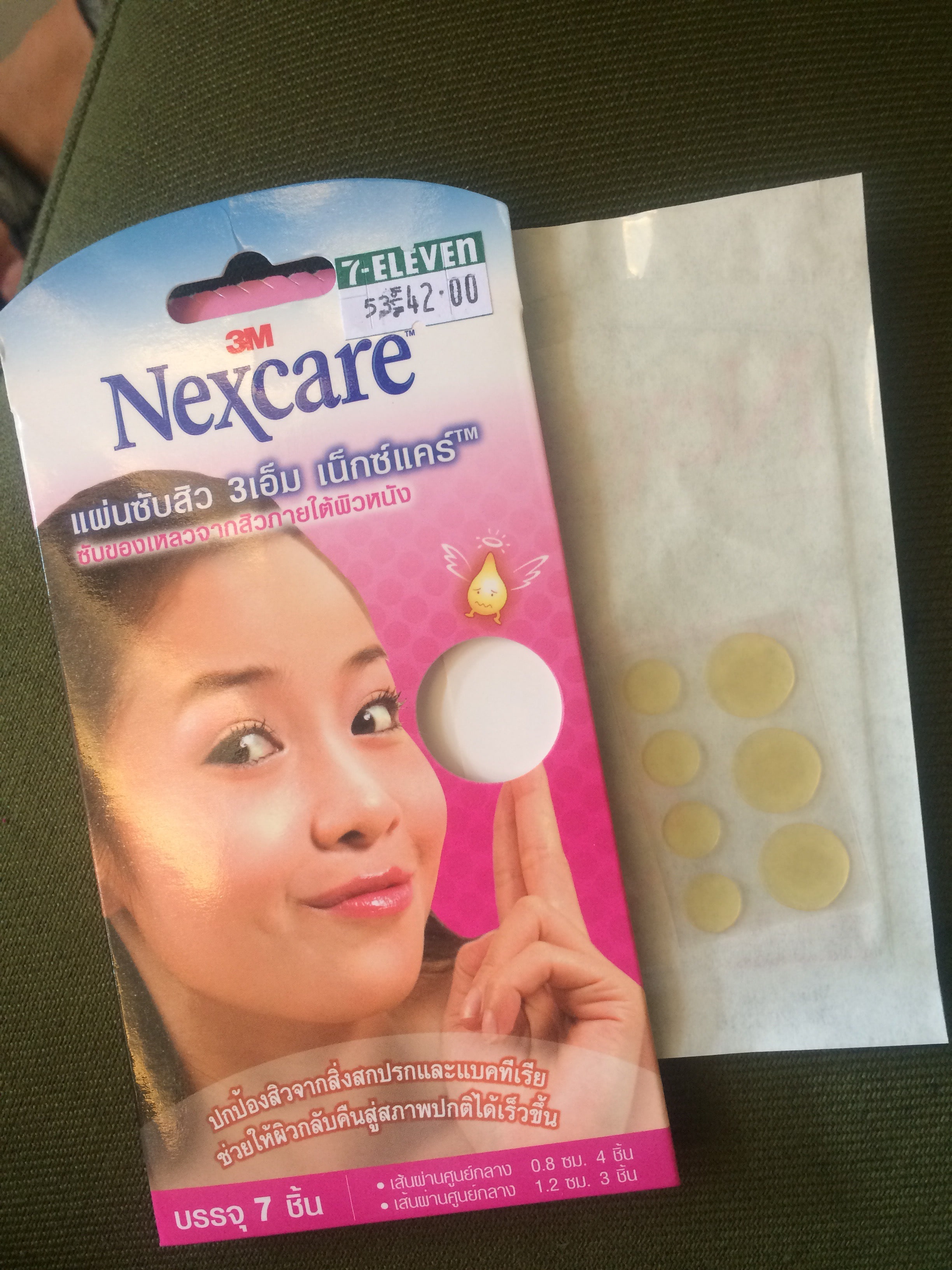 También encontré los famosos parches para imperfecciones de Nexcare (42 bahts), los parches de carbón para puntos negros (esos parecen ser más eficientes porque se ve mucho más lo que se ha eliminado) y un montón de otras cremas de placenta, suero, vitamina C, mascarillas, AHA, BHA para probar por diversión
