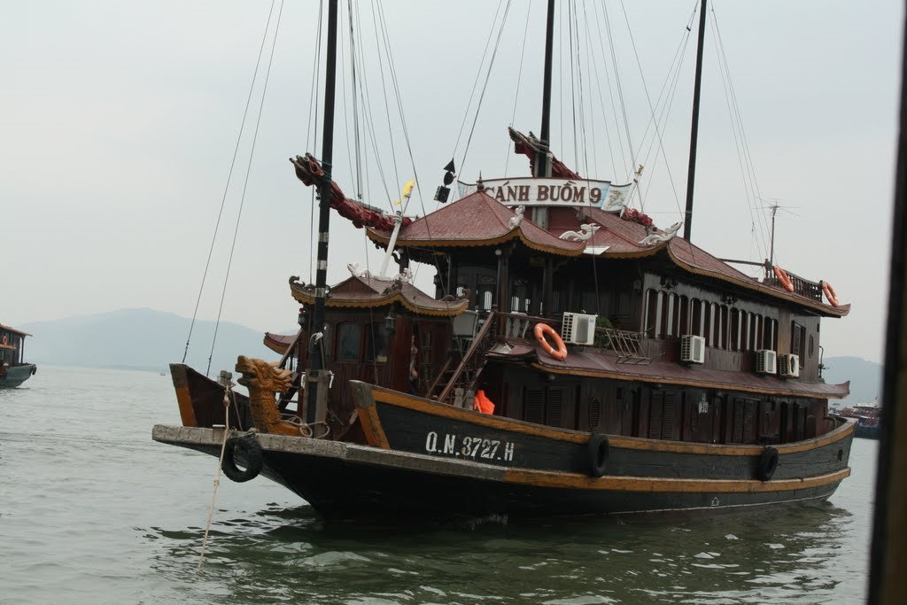 Los juncos a vela son muy raros en la bahía de Ha Long. Las embarcaciones están ahora motorizadas. Para tomar este tipo de chatarra, hay que pagar más. Mi madre fue invitada a viajar en un barco de vela como este, y aparte del servicio más lujoso, me dice que los paisajes siguen siendo los mismos, así que para qué pagar más (mamá es práctica :D)