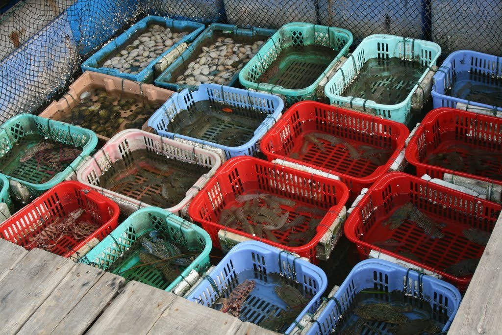 Visitamos a los pescadores que viven en los pueblos flotantes. Ya no pescan demasiado, de hecho, es más bien una granja