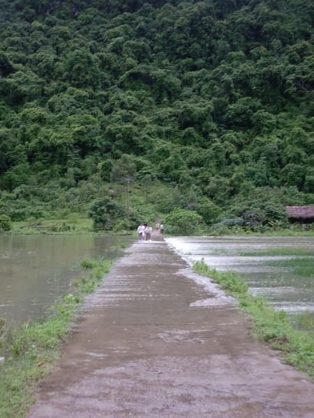 Al día siguiente, nos detenemos en el pueblo de Viet Hai. Allí ya le esperan varias motos. Acaba de llover y las carreteras están un poco inundadas