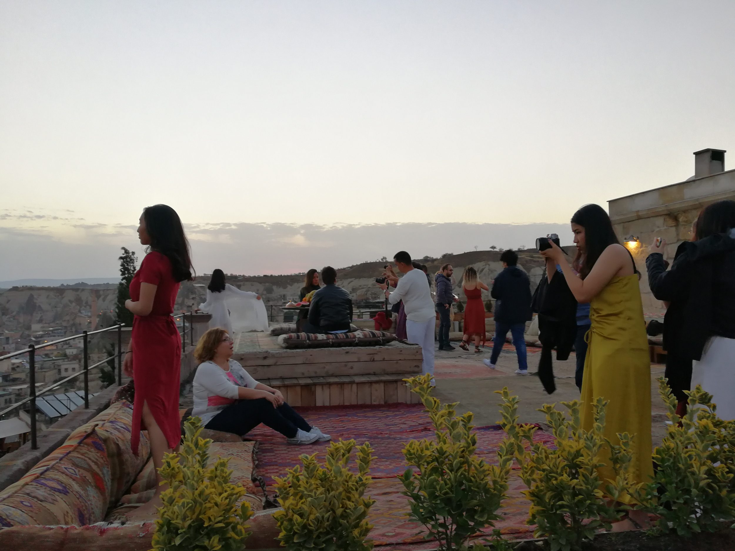 Este fin de semana hemos estado en la región de Capadocia, en Turquía. Esta región es conocida por sus impresionantes paisajes y sus cuevas. Por último, todas las mañanas, la región es sobrevolada por un centenar de globos aerostáticos. Hace que el lugar sea mágico e increíblemente fotogénico.Creo que es la primera vez que vamos a un lugar donde mucha gente viene después de ver fotos en Instagram. Es el caso de una pareja francesa que conocimos y que decidió venir aquí el fin de semana de su cumpleaños.La mayoría de los hoteles trogloditas de la ciudad cuentan con magníficas terrazas que ofrecen un panorama increíble. Es el caso de nuestro hotel (Sultan Cave Suites) que, surfeando sobre el fenómeno Instagram, incluso instala cada mañana una decoración con alfombras y cojines tradicionales turcos que permiten hacer fotos de este tipo.