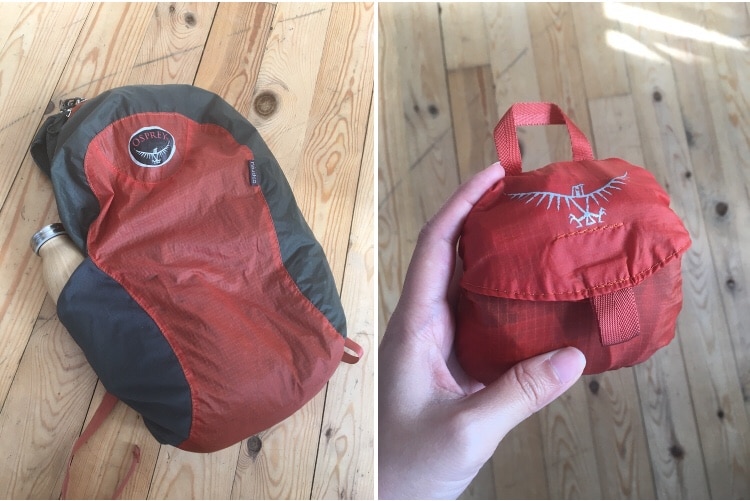 O, por el contrario, si quieres pasar 1 o 2 días en una ciudad cercana, dejando la gran mochila en el albergue. La mochila pequeña debe ser lo suficientemente grande (me refiero al volumen), robusta, pero también cómoda de llevar, y fácil de guardar si es necesario. Para ello, la pequeña mochilaOsprey Ultralight Stuff Pack Poppy Orange (10L) quehe estado utilizando desde el inicio de la vuelta al mundo es inmejorable. Doblado, no es más grande que una manzana.