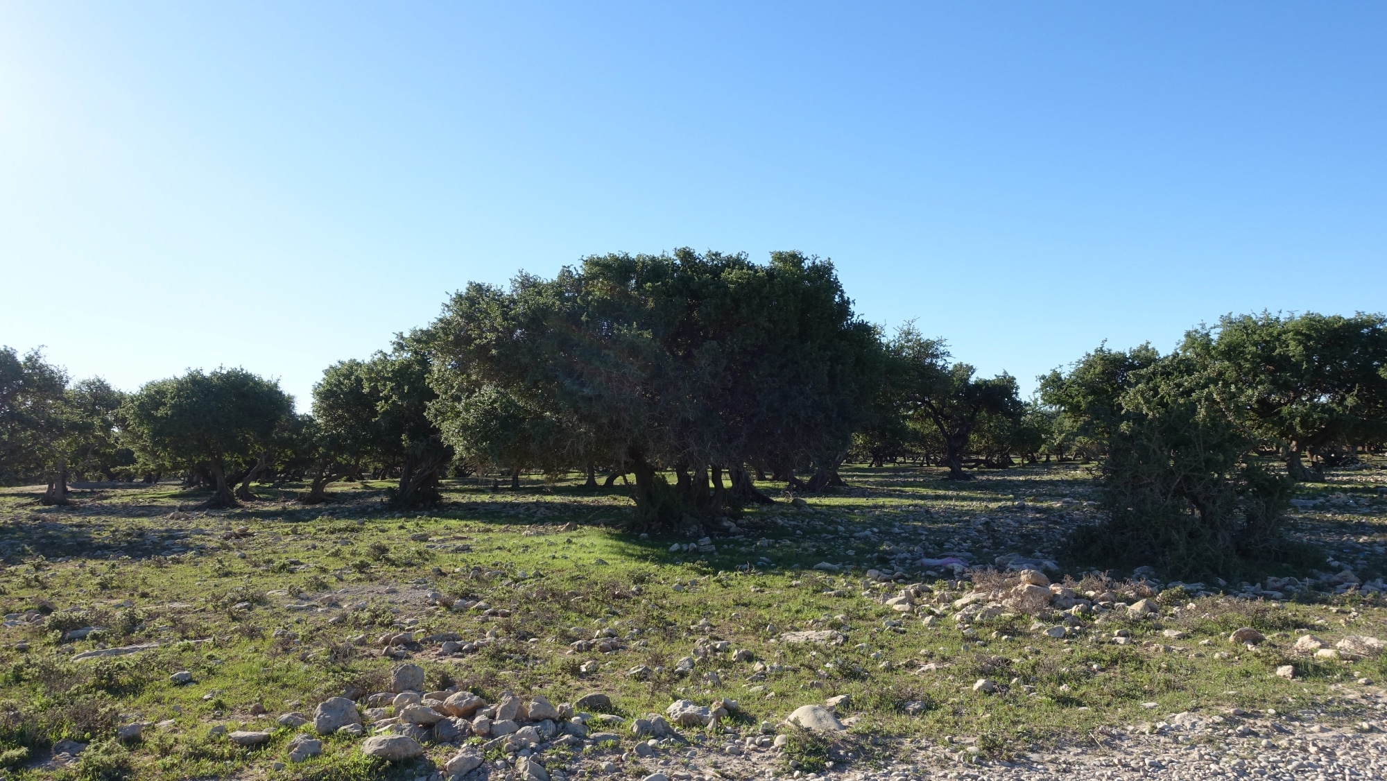 Empezamos con la visita de una cooperativa de producción de aceite de argán, cuyo tío abuelo de JB (que vive aquí) nos contó muchas cosas buenas. Atravesamos un campo de argán (el camino es correcto, y accesible incluso sin un 4×4) para llegar a la cooperativa, que parece estar bastante tranquila esta mañana.