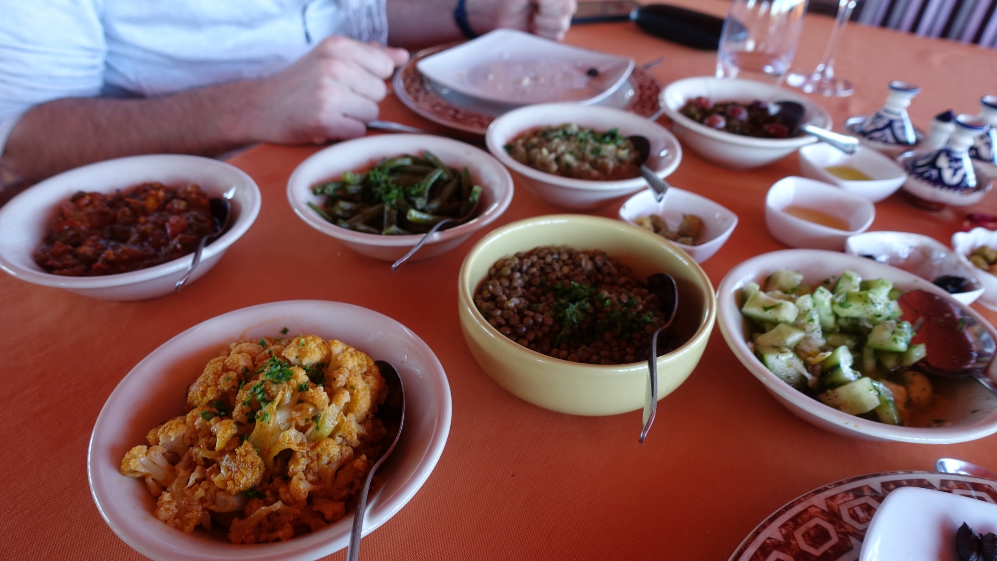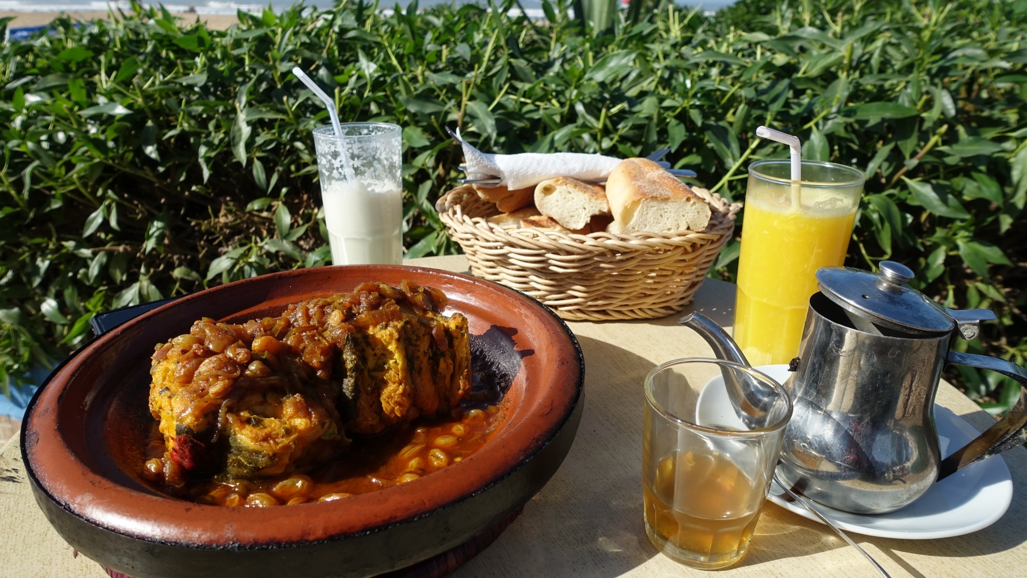 Así que continúo con el diario de viaje que comienza otro día. JB y yo decidimos ir a comer a Beach & Friends, cerca de los clubes de surf. Pero hay más tumbonas que mesas, así que nos instalamos en el restaurante de al lado, que tiene tagines en el menú.