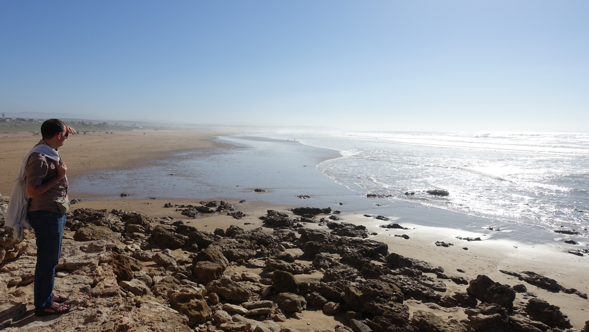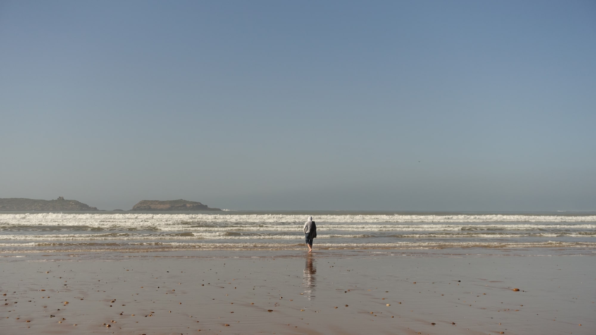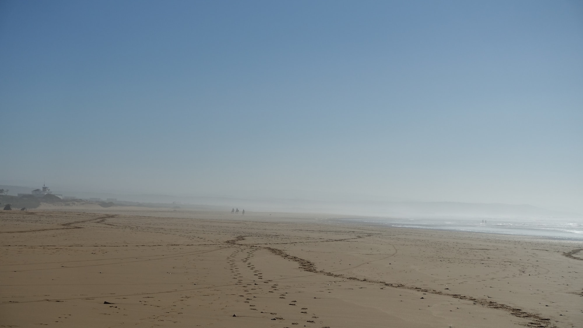 Volvemos a tomar la carretera para ir a Sidi Kaouki, una playa enorme y aún menos concurrida que la de Essaouira. Aquí hay algunos restaurantes junto a una villa abandonada, un camping casi en la playa y algunos servicios: paseos a caballo, en camello, en quad… El viento sopla más fuerte aquí y los surfistas, creo, preferirán esta playa.