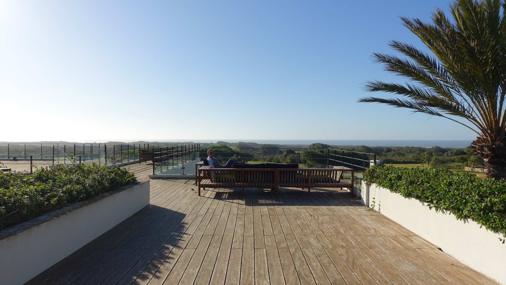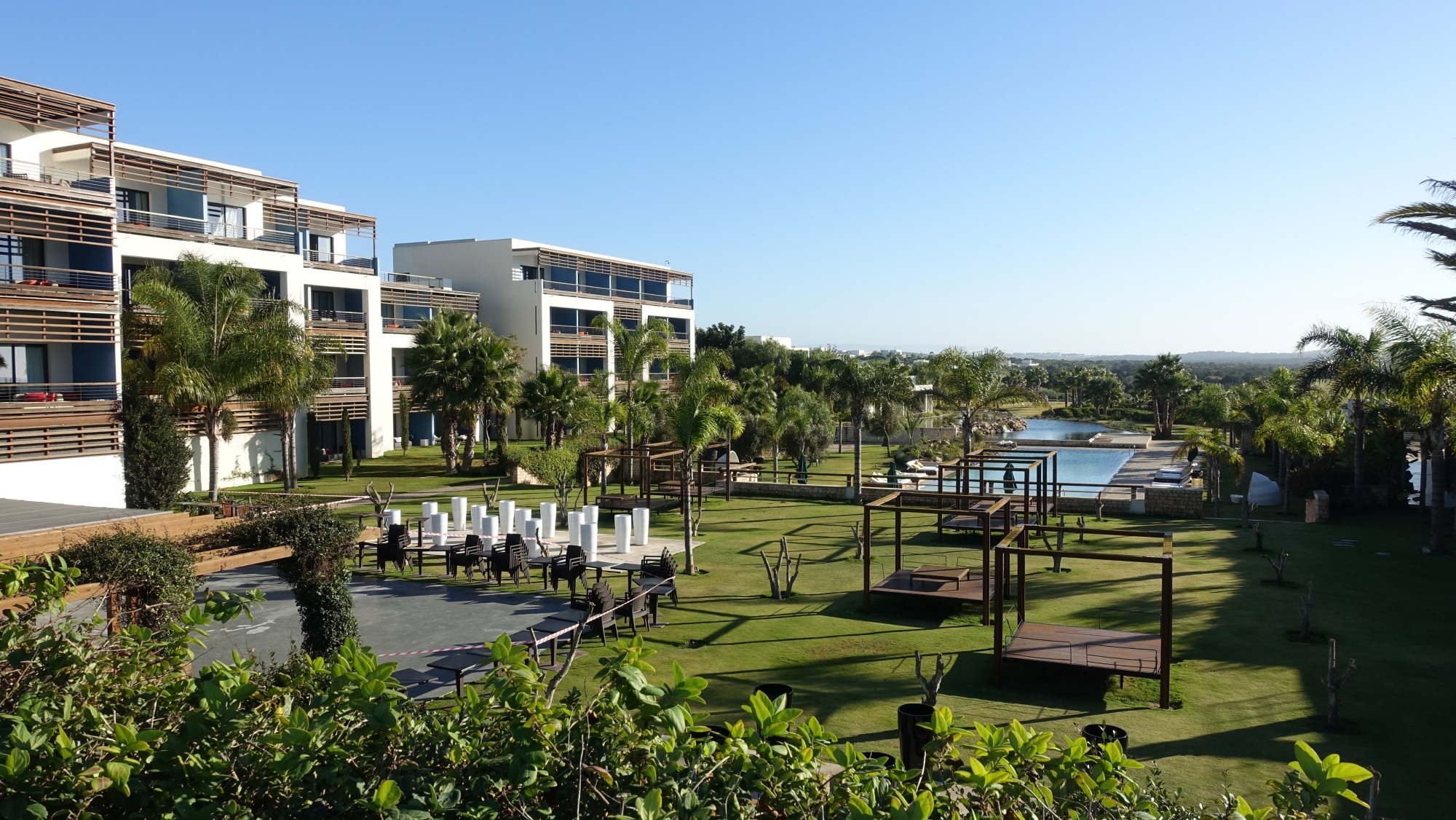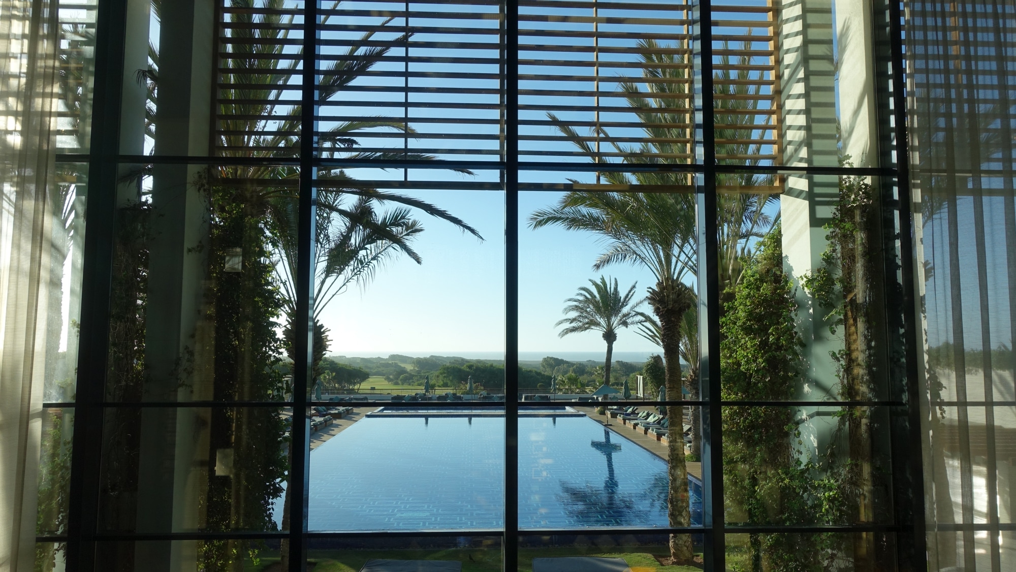Estamos acostumbrados a estar en cuclillas en hoteles de 5 estrellas para tomar una copa en el bar. Este hotel también cuenta con un bonito campo de golf y varias piscinas infinitas, incluida esta que se ve desde la recepción.