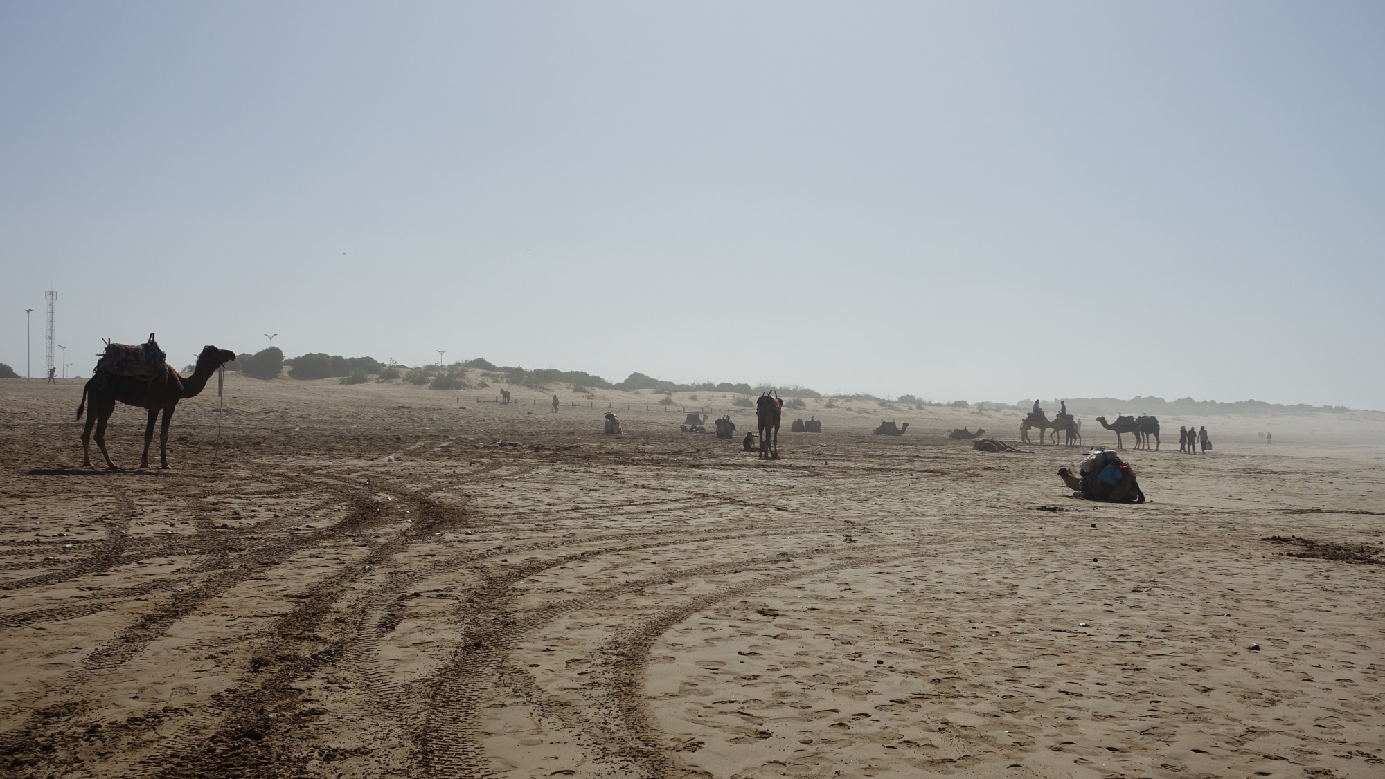 En este lado de la playa, hay más dunas por lo que los camellos están allí, con los quads y los caballos. Es curioso ver a los camellos en la playa, es la primera vez que lo veo.