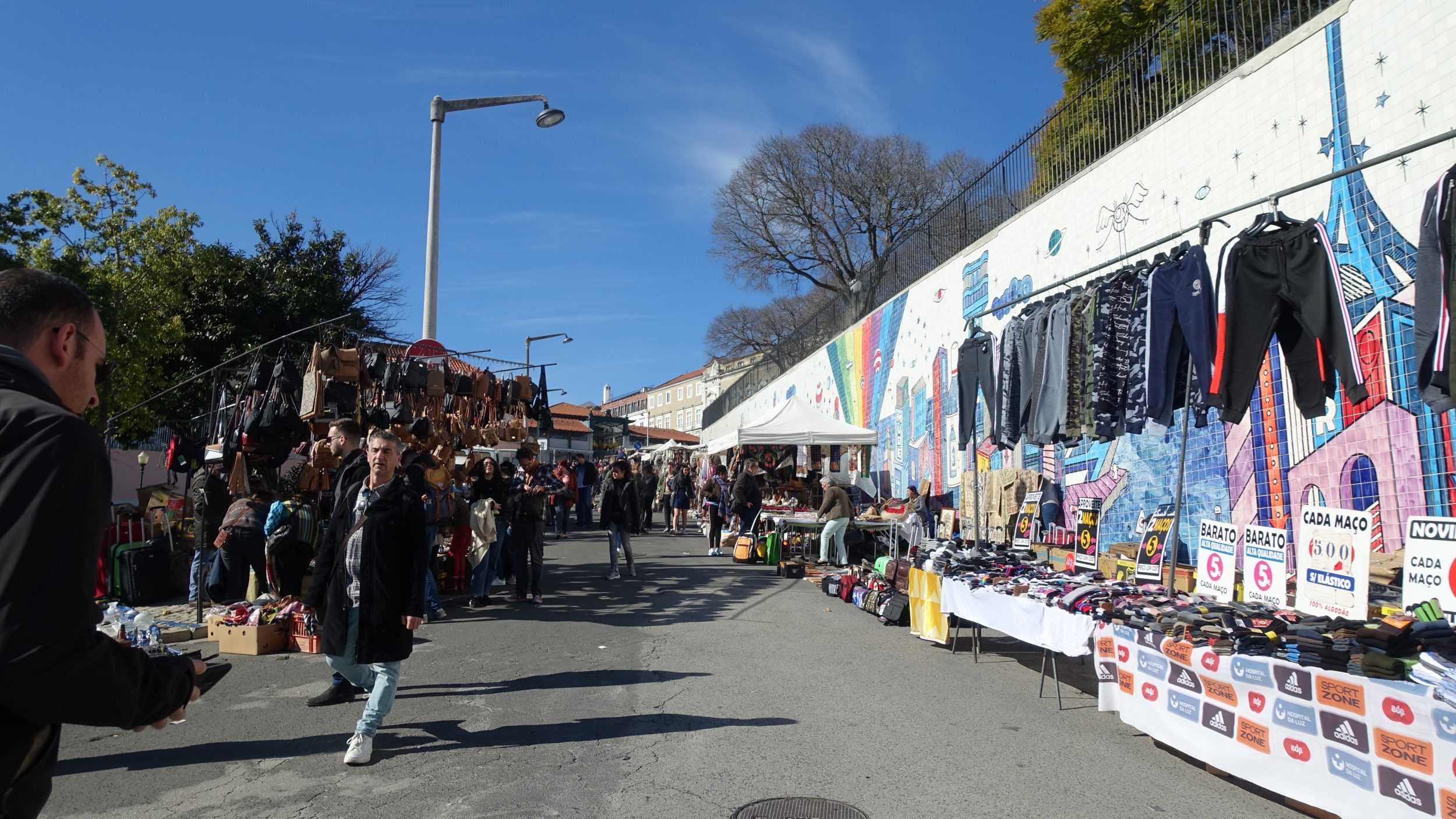 Justo al lado se encuentra la Feria da Ladra, el lugar donde los comerciantes medievales vendían sus propios productos, así como los alimentos que habían robado. Hoy se ha convertido en un mercadillo en el que se mezclan anticuarios con comerciantes que acuden con productos dignos de una venta de garaje. Vi, por ejemplo, un montón de bonitos abrigos, vajillas portuguesas y bonitas chucherías. Se rumorea que algunos de ellos siguen vendiendo artículos robados.
