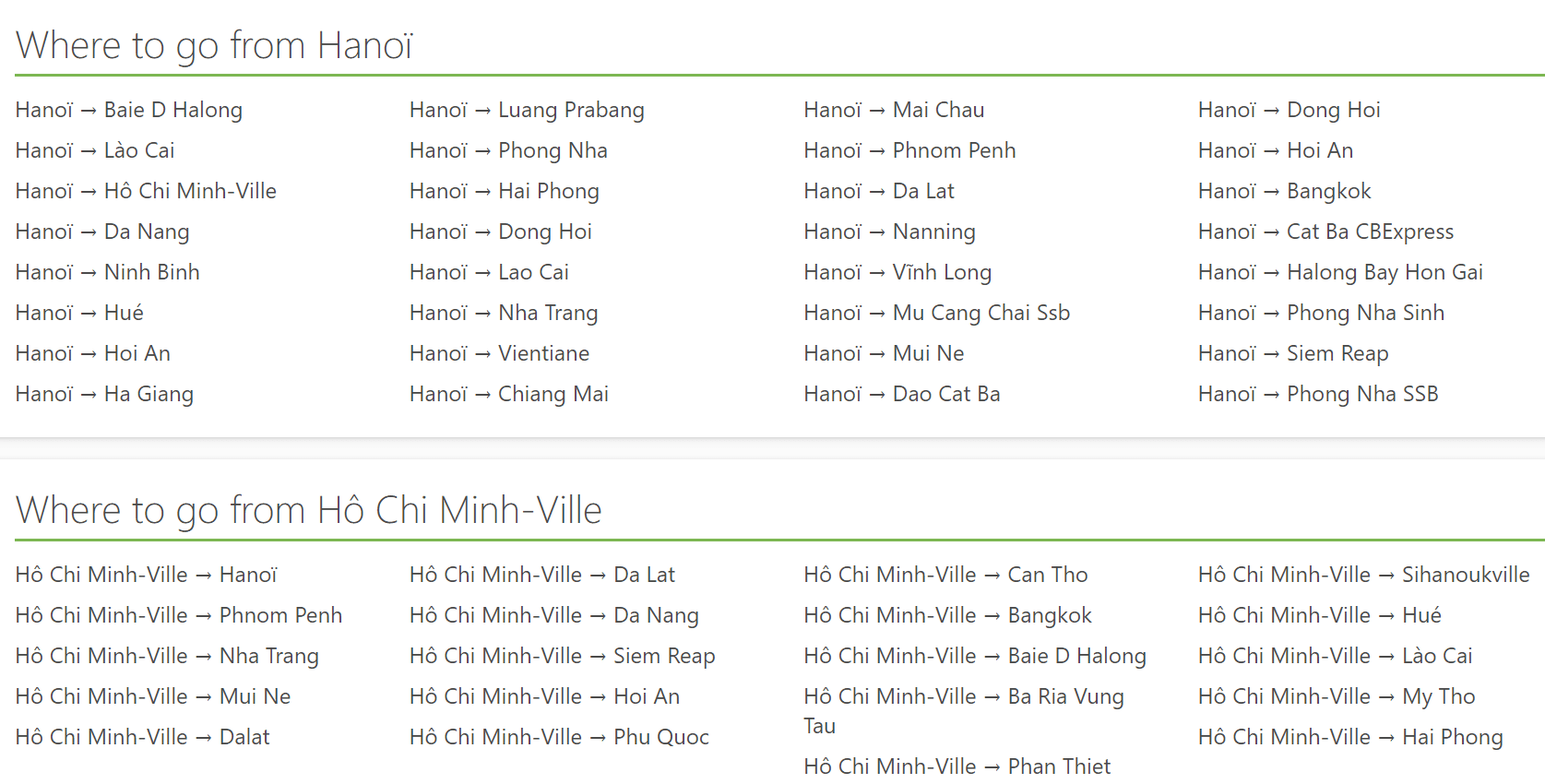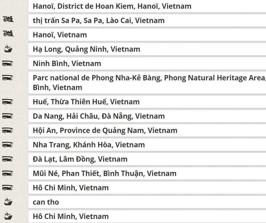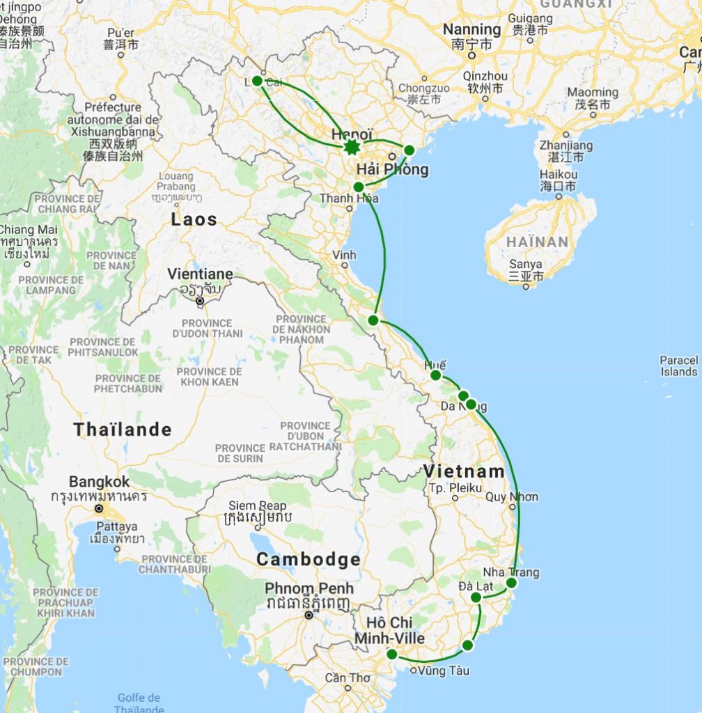 Este es el itinerario que recomiendo si quieres visitar Vietnam en 3 semanas. Los destinos son más bien turísticos, pero te aseguro que hasta los vietnamitas van allí. Algunos de los nuevos destinos locales más populares son Co To, Binh Lap, Binh Ba… pero los vietnamitas alquilan un coche para ir allí, o pagan a una agencia para llegar, todavía no hay ningún autobús abierto para ello.