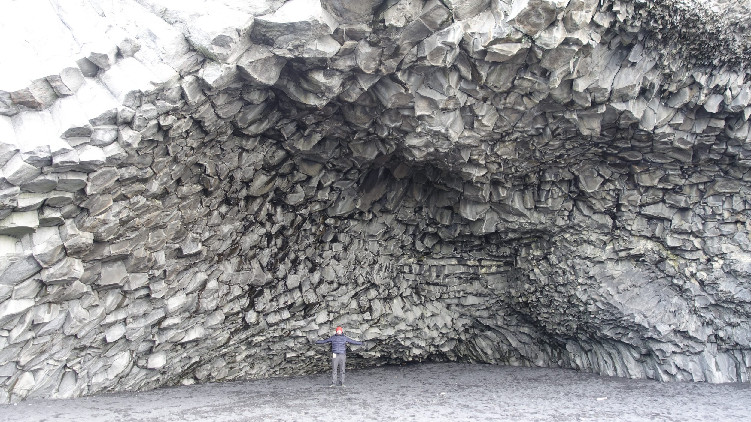 Rodeamos la montaña para llegar a esta hermosa playa de arena negra. Podemos ver las rocas en la distancia en el nombre de Reynisdrangar. La leyenda dice que son trolls petrificados por la luz del día mientras varaban un barco.