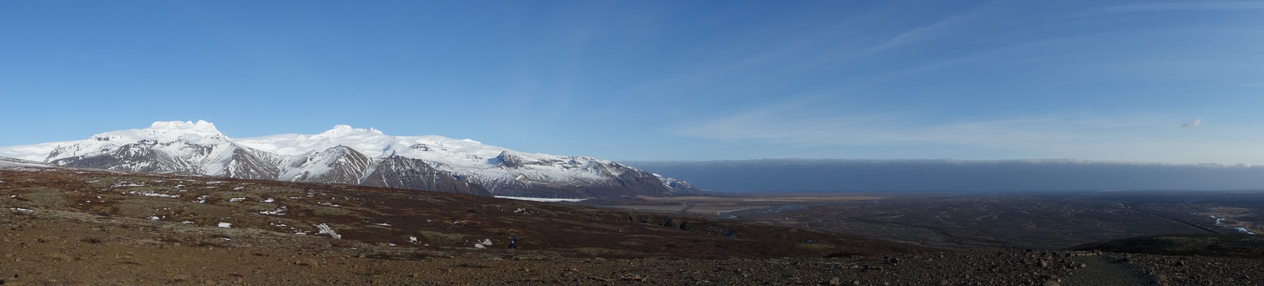Pues se equivocan Porque después de 200m (se sube de todos modos), tenemos una vista de 360 ° C sobre toda la zona. Nos damos cuenta del impacto de dos erupciones volcánicas (hace siglos), hay campos de lava hasta donde alcanza la vista por un lado, y montañas nevadas con enormes glaciares por el otro.