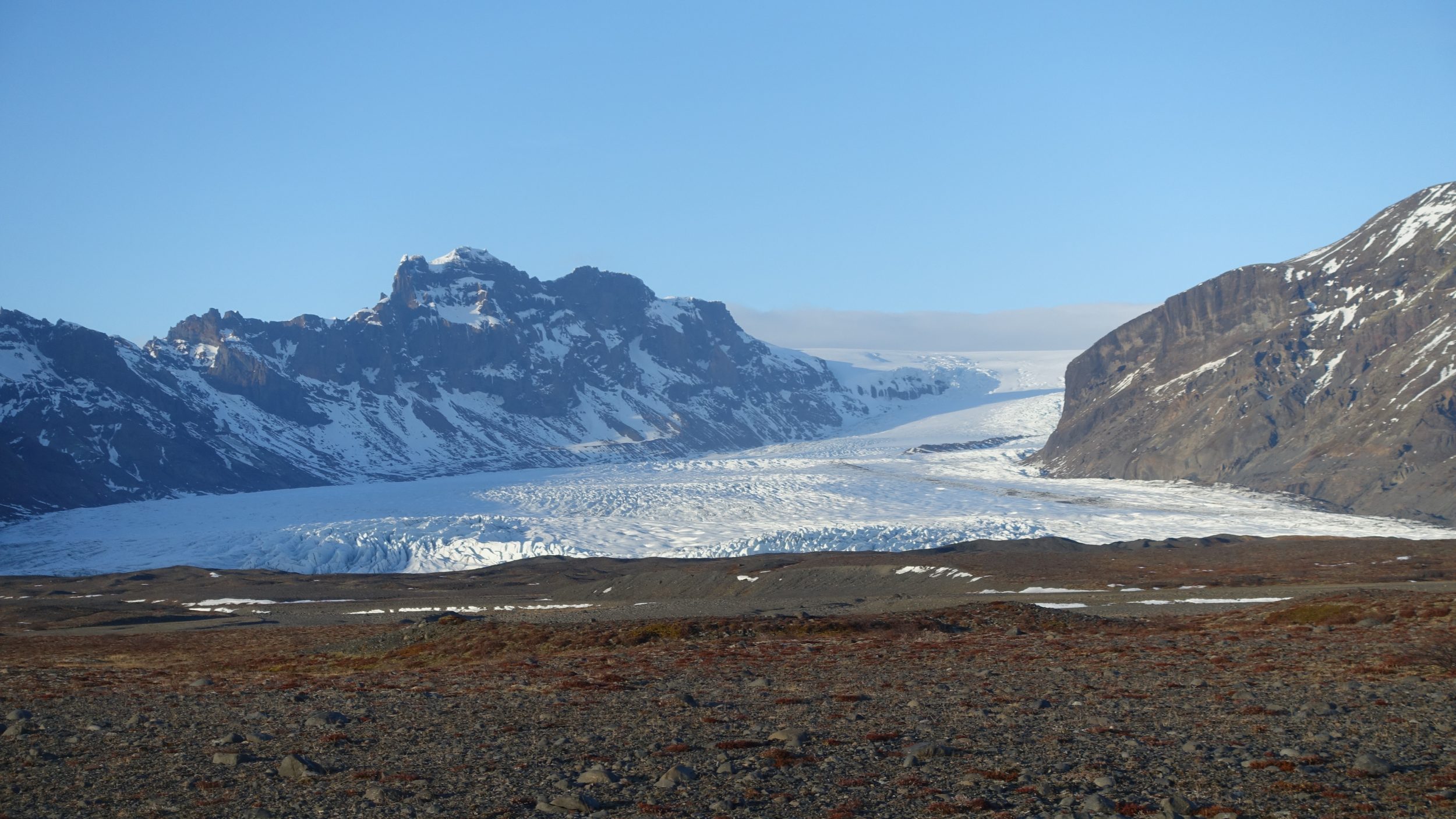 Hoy hace sol y mañana está feo, así que conducimos a toda velocidad hacia el Parque Nacional de Skaftafell, aunque eso signifique saltarse una etapa (una bifurcación en Haoldukvisl para ir a ver un glaciar -volveremos allí mañana).