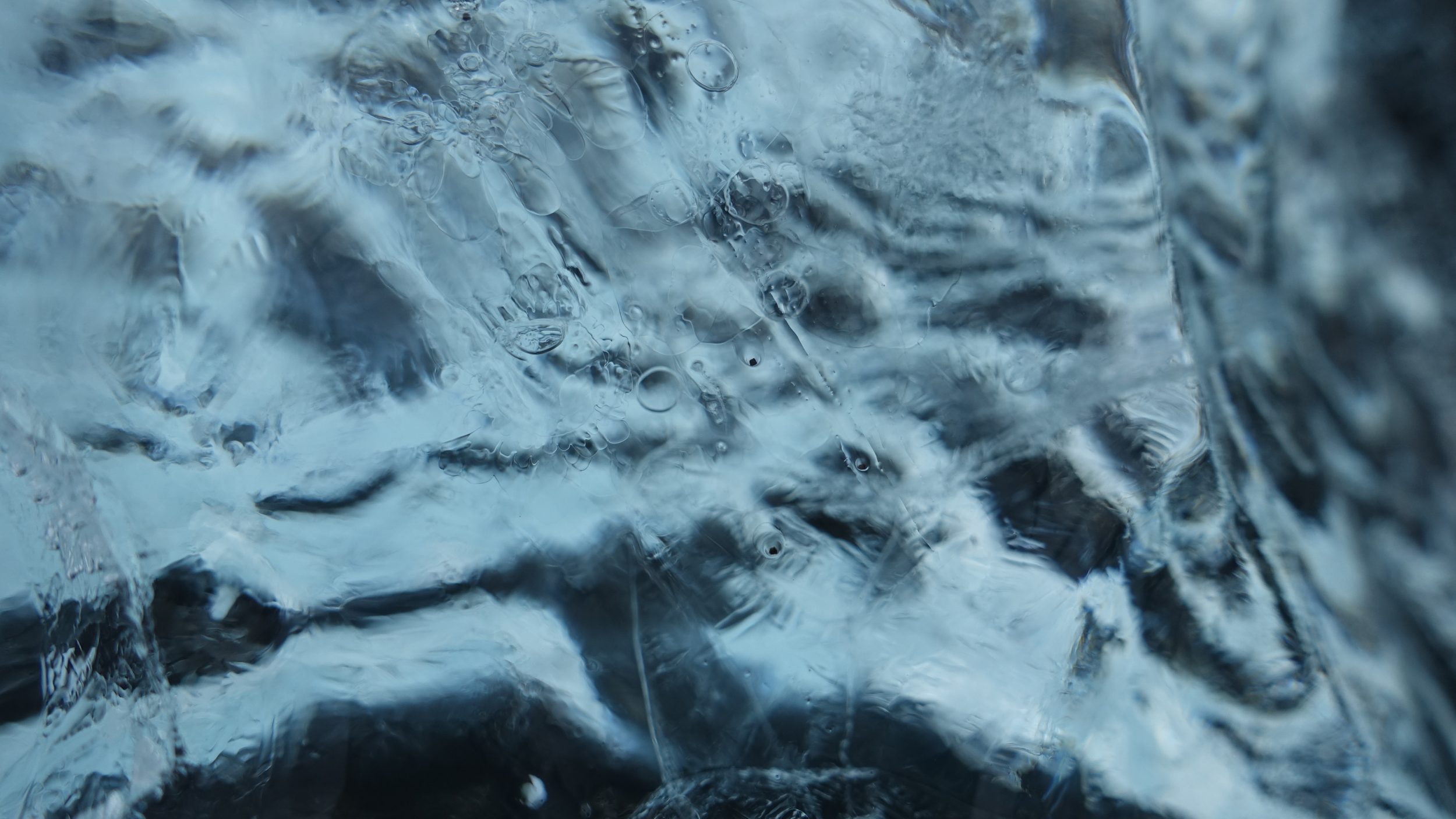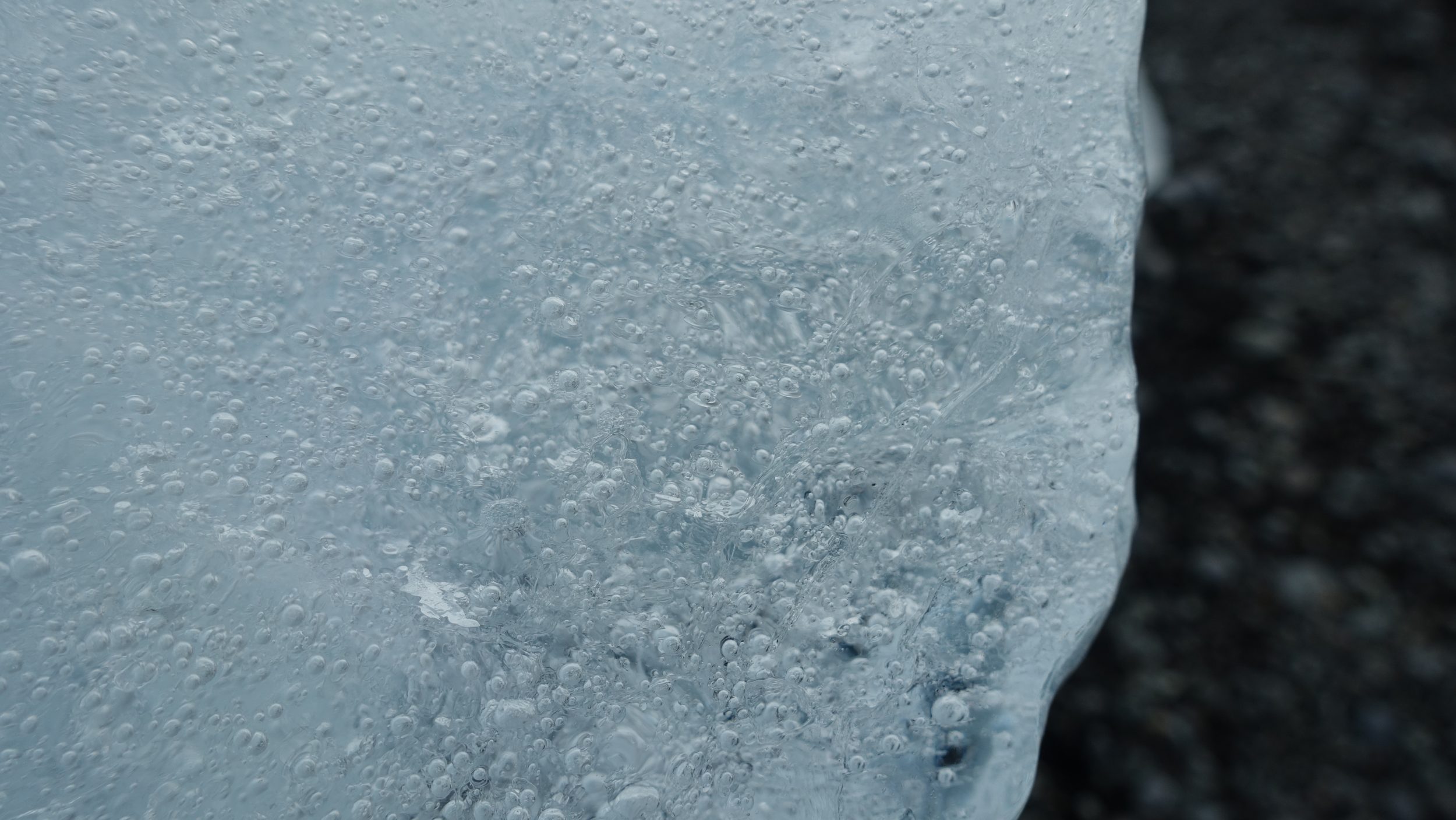 Observamos que algunos icebergs son más azules que otros. Al inspeccionarlos, comprobamos que los icebergs azules tienen menos burbujas de oxígeno en su interior que los blancos. También es una cuestión de «edad». Los glaciares jóvenes se forman por la acumulación de nieve y contienen mucho oxígeno. Cuanto más viejos son, más presión hay, y las burbujas desaparecen => color azul.
