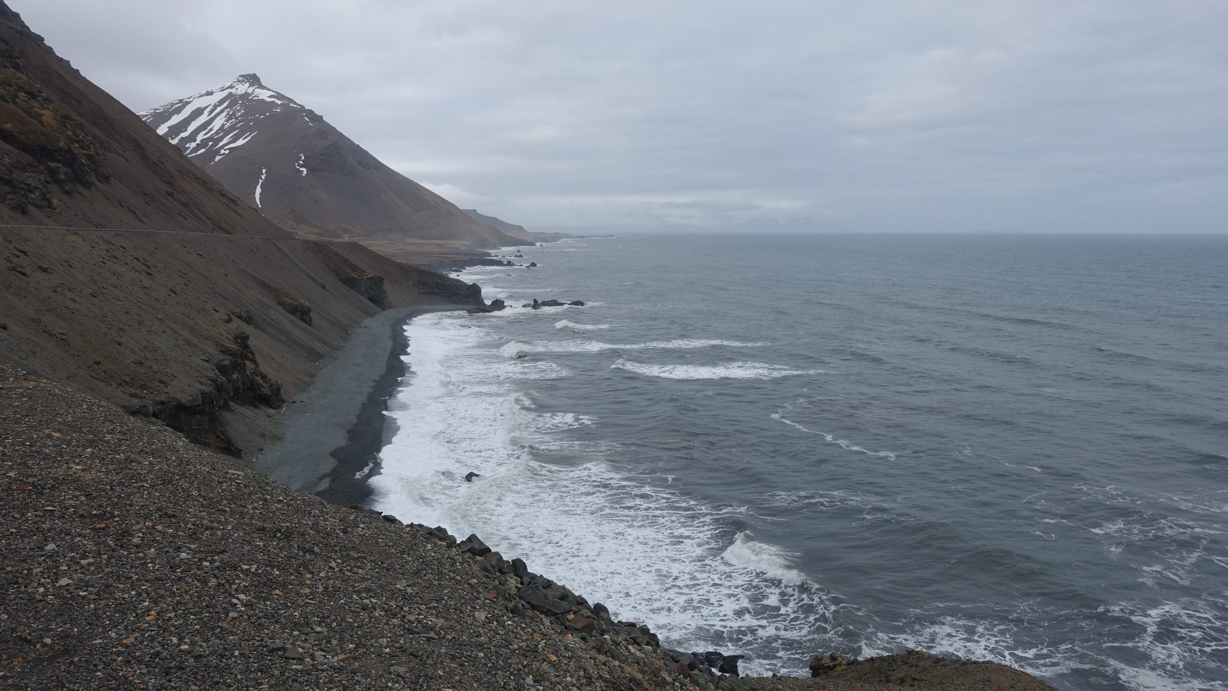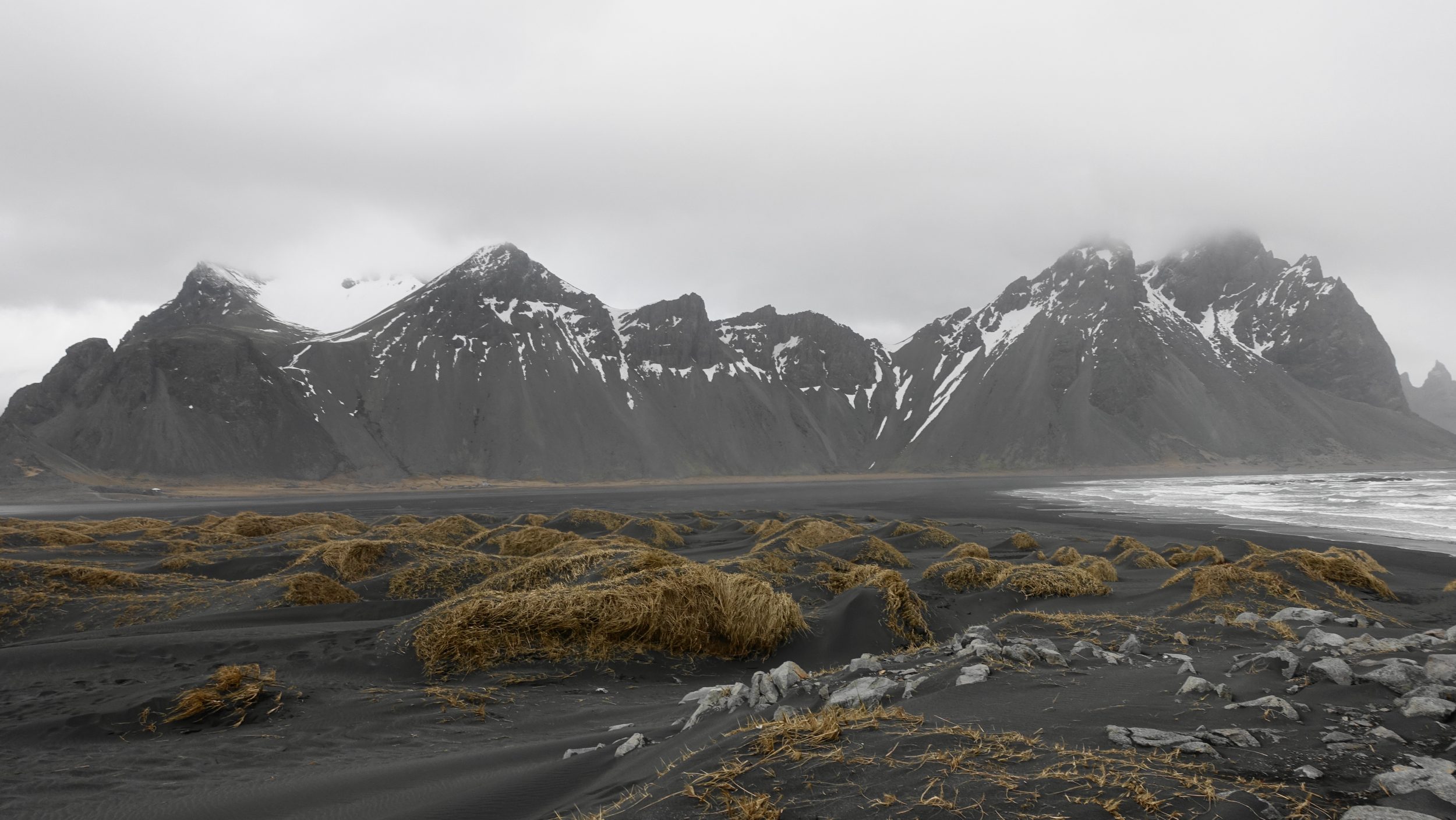 Al marcar el billete de entrada tenemos acceso a un camino (accesible en coche) que lleva a la playa de Strokksnes. Desde la playa de arena negra tenemos una maravillosa vista de la montaña Vestrahorn, un paraíso para los fotógrafos (y escaladores). Desgraciadamente, mis fotos no fueron un gran éxito por culpa del tiempo. Cuando hace buen tiempo, se puede ver el Vestrahorn reflejado en el agua (mira en google maps)