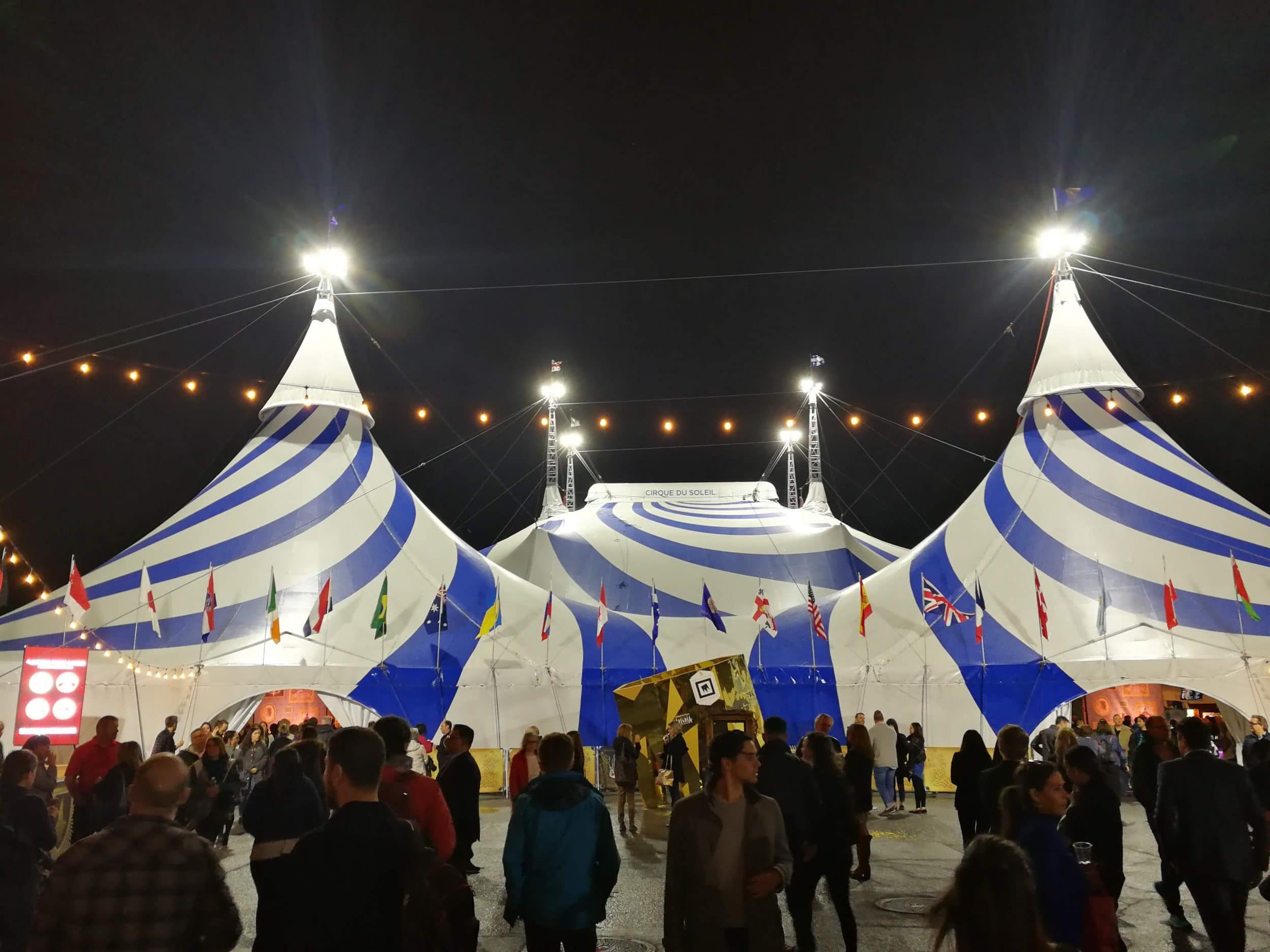 Aunque algunas actuaciones del Cirque du Soleil tienen lugar ahora en teatros o salas de conciertos, es a la antigua usanza, bajo una gran carpa, donde disfrutaremos del espectáculo. Este está plantado en el antiguo puerto de Montreal.