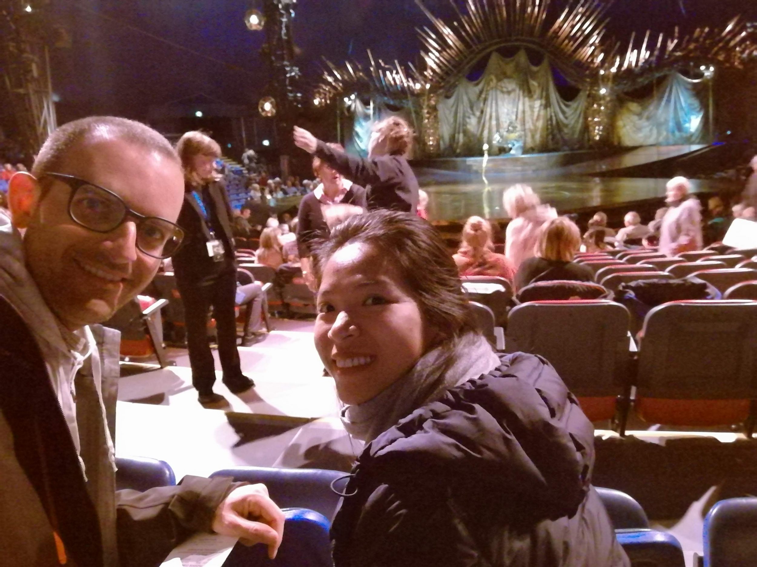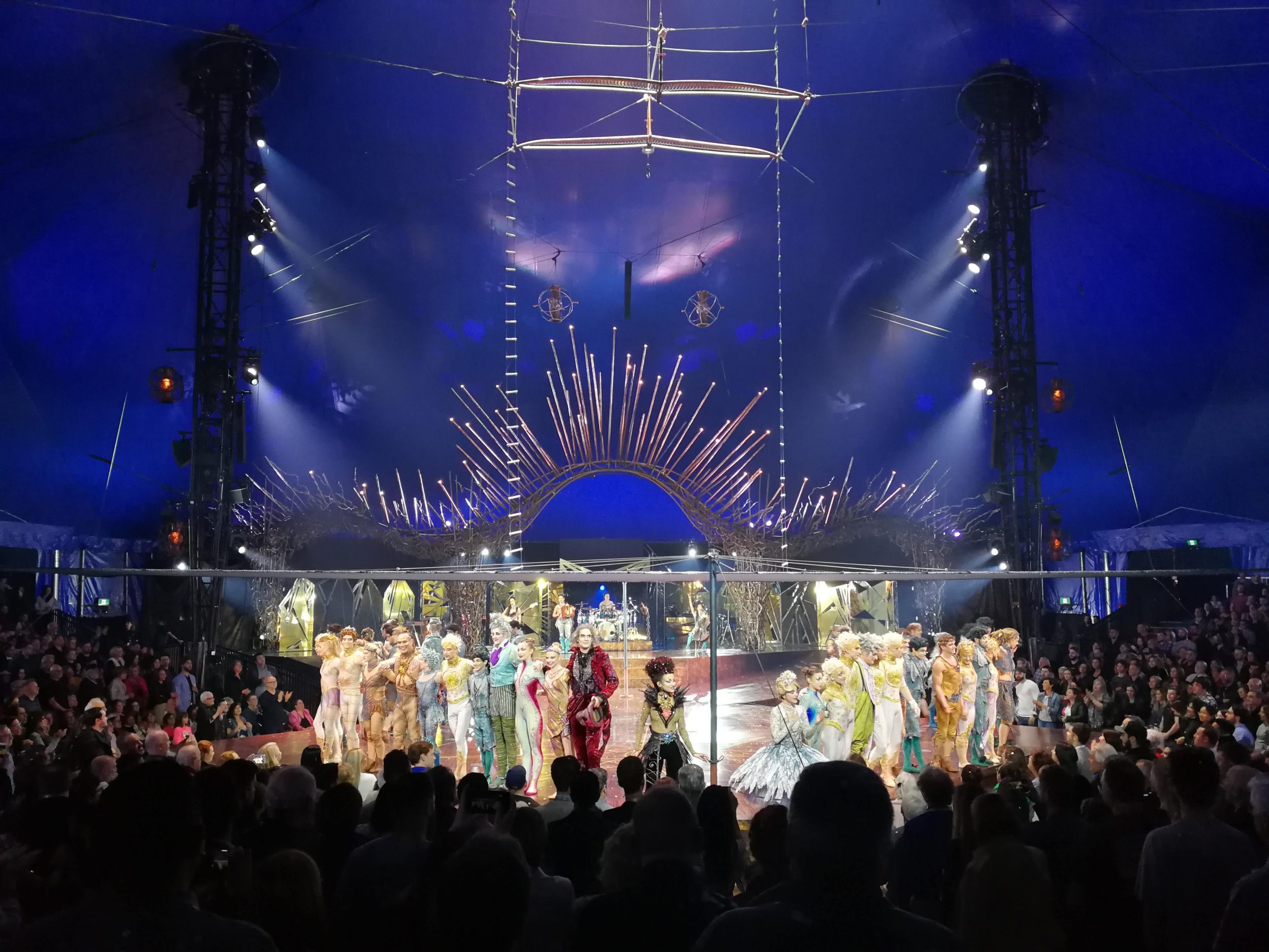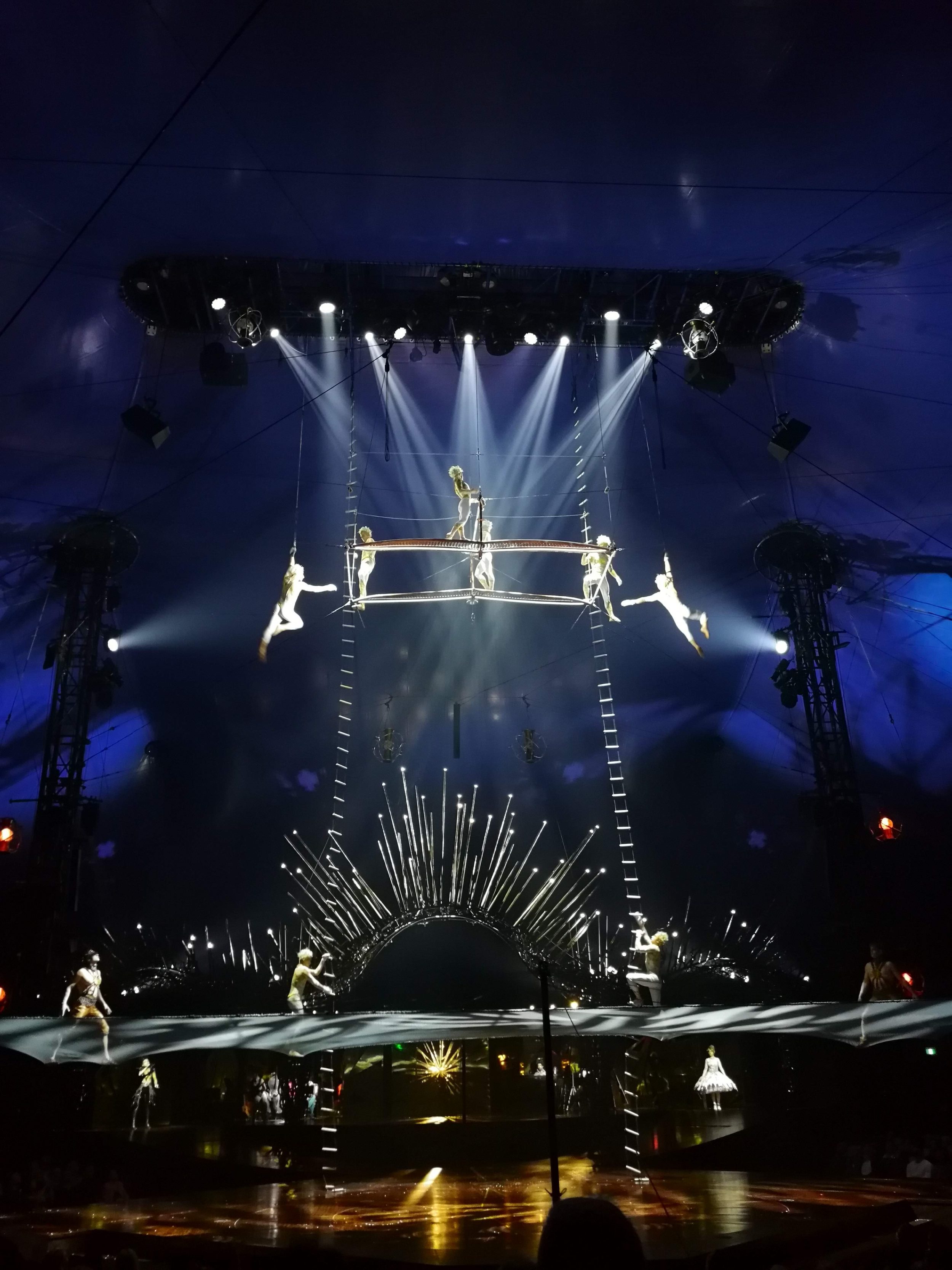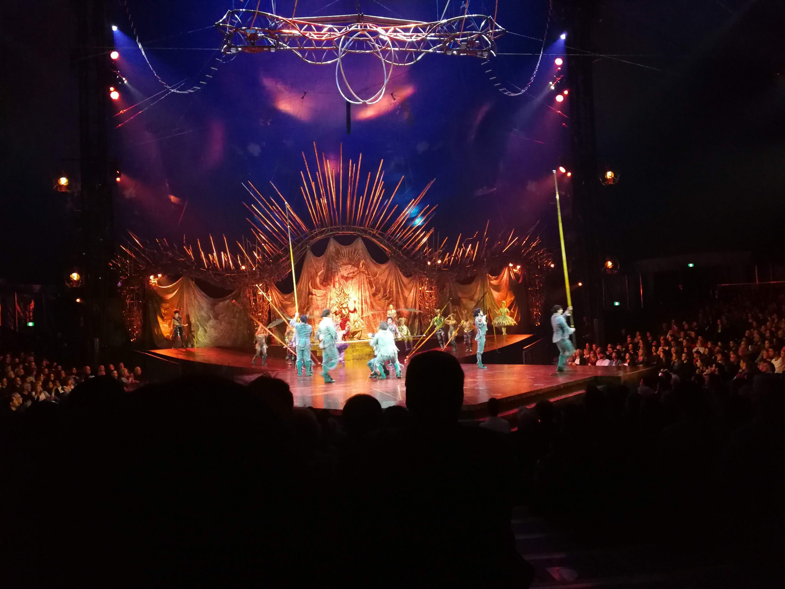 El espectáculo está empezando y estamos recibiendo mucha atención desde el principio. El Cirque du soleil se distingue por la ausencia de animales y se basa principalmente en actos acrobáticos.