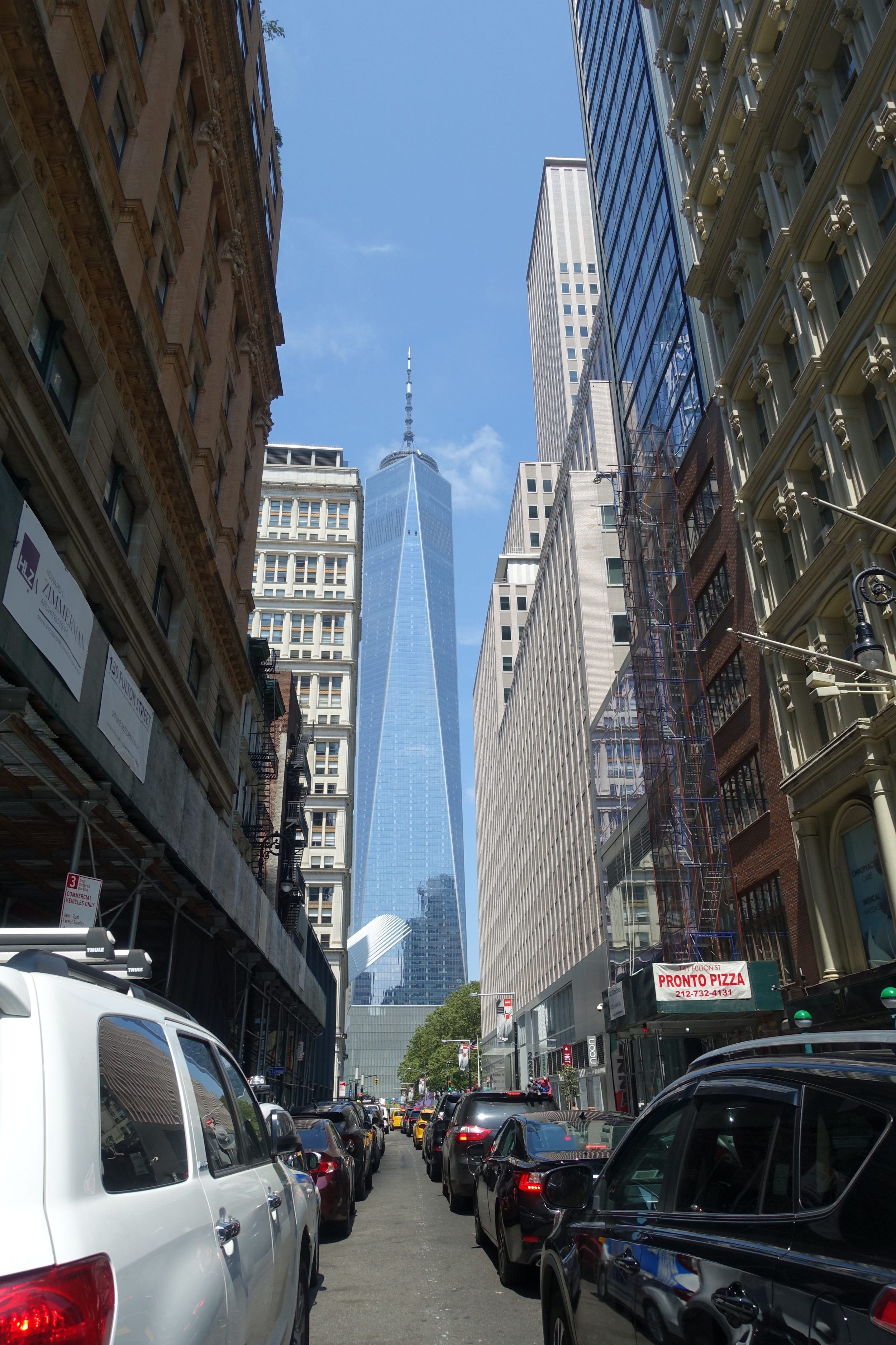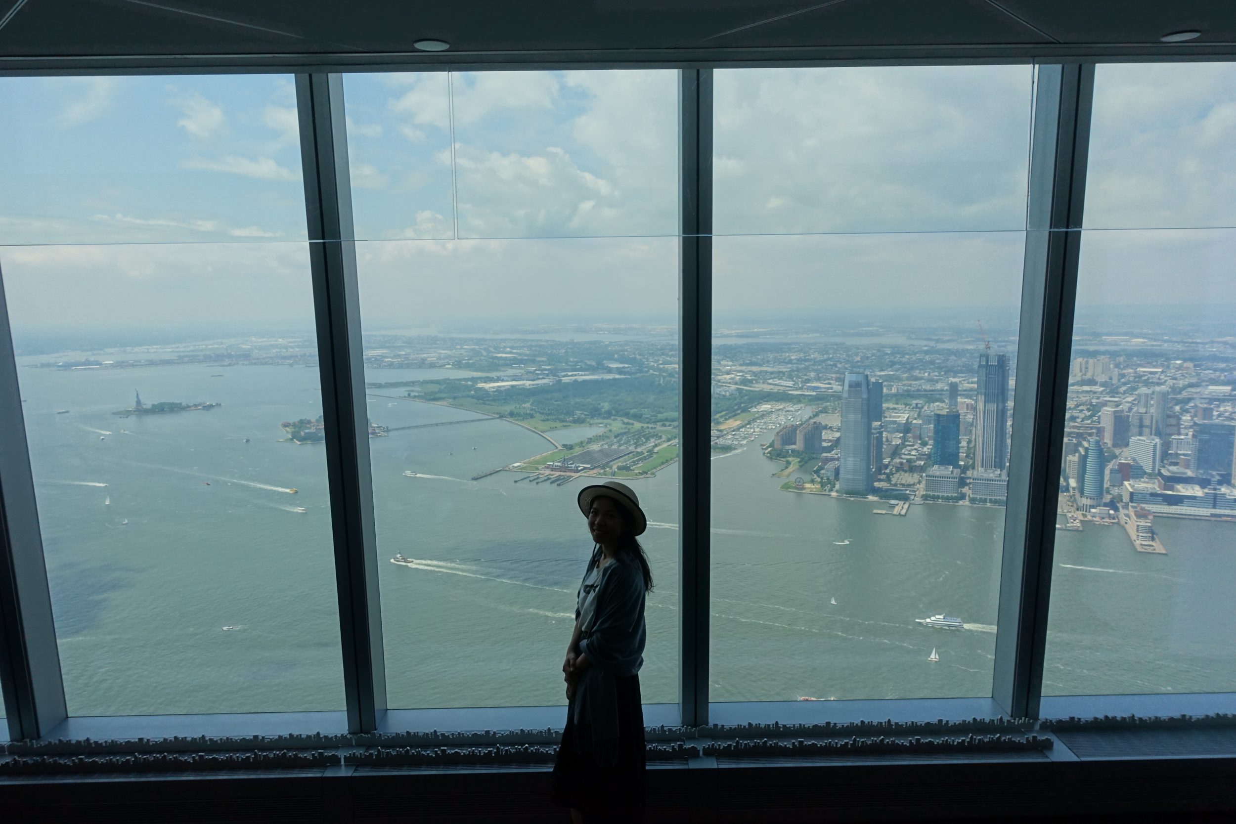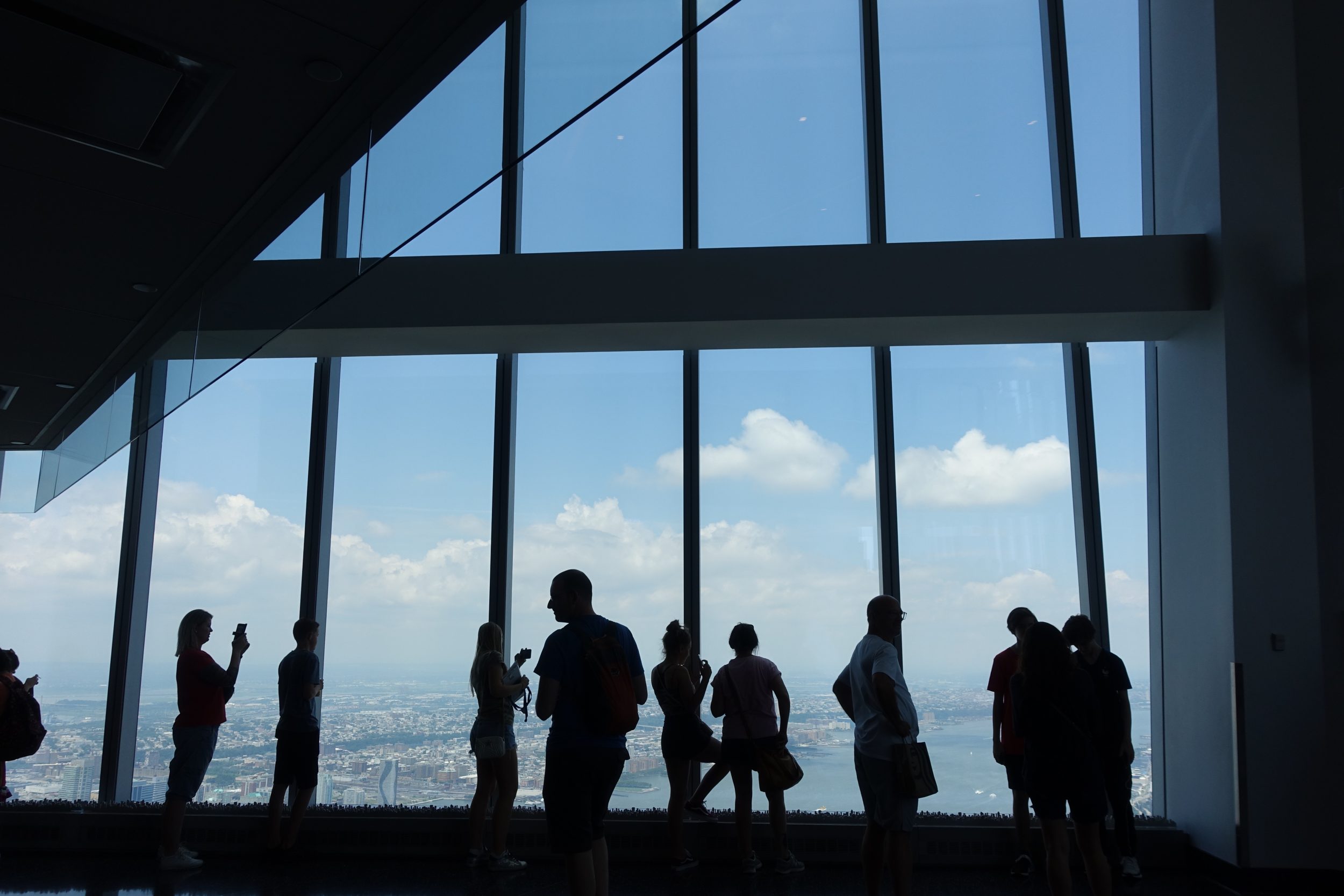 Hoy hemos ido al One World Observatory, el observatorio del rascacielos One World Trade Center, construido junto a las antiguas Torres Gemelas e inaugurado en 2014. Me doy cuenta, viendo las fotos, que esta torre está «camuflada» pero en realidad la podemos ver muy bien y no confundirla con el cielo 😀