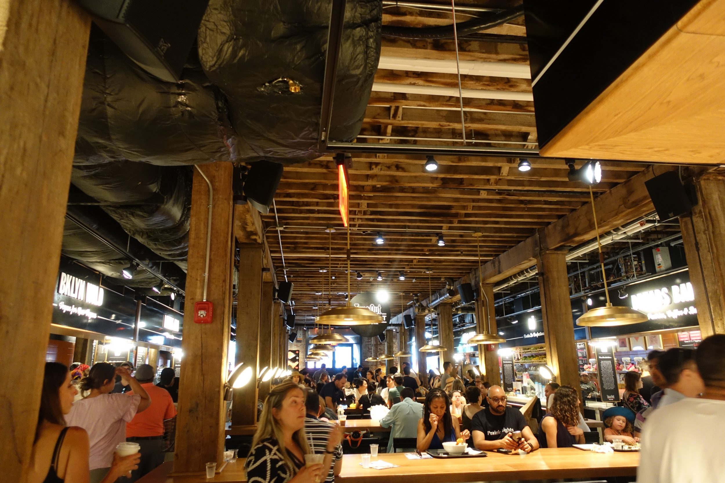 Time Out es un concepto desarrollado en varias ciudades del mundo. Pudimos visitar Time Out en Lisboa (y vimos Time Out en construcción en Montreal). Este lugar reúne a los mejores chefs-restaurantes de la ciudad, en una especie de cantina de lujo, que nos permite explorar la gastronomía de una ciudad en un solo lugar. Normalmente, Time Out está en el centro de la ciudad, pero para Nueva York, probablemente sea demasiado caro, así que éste está en Brooklyn.