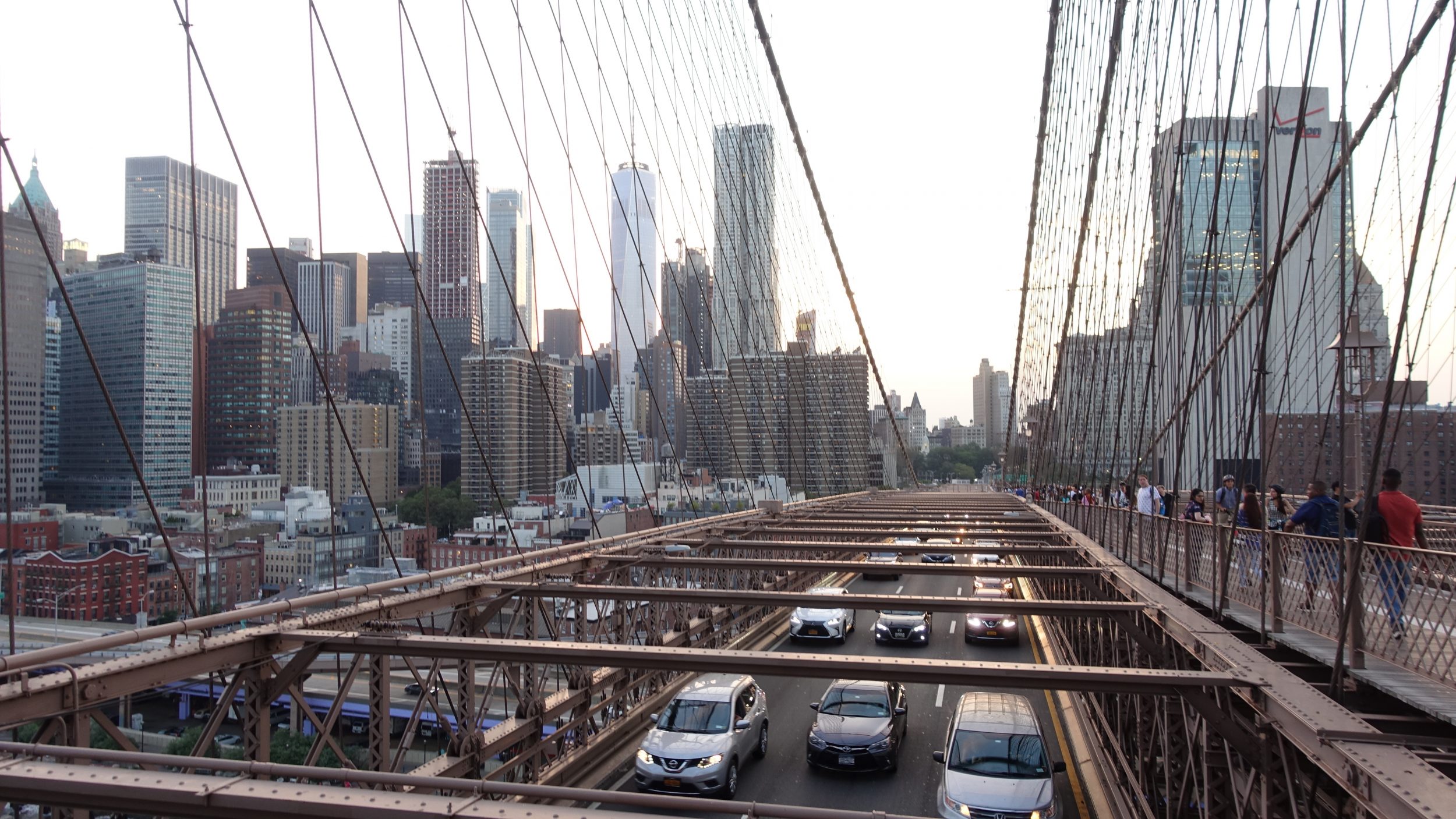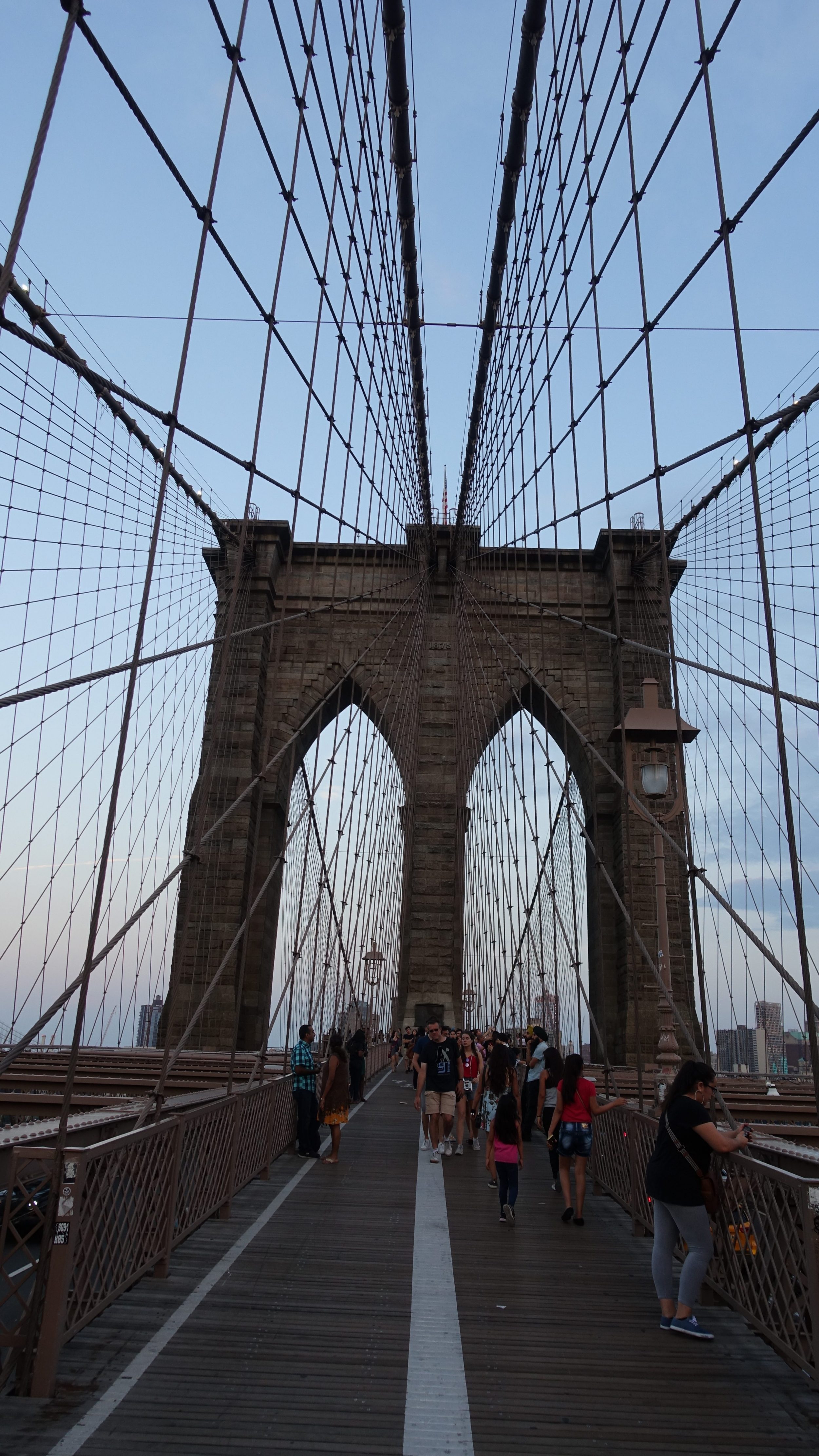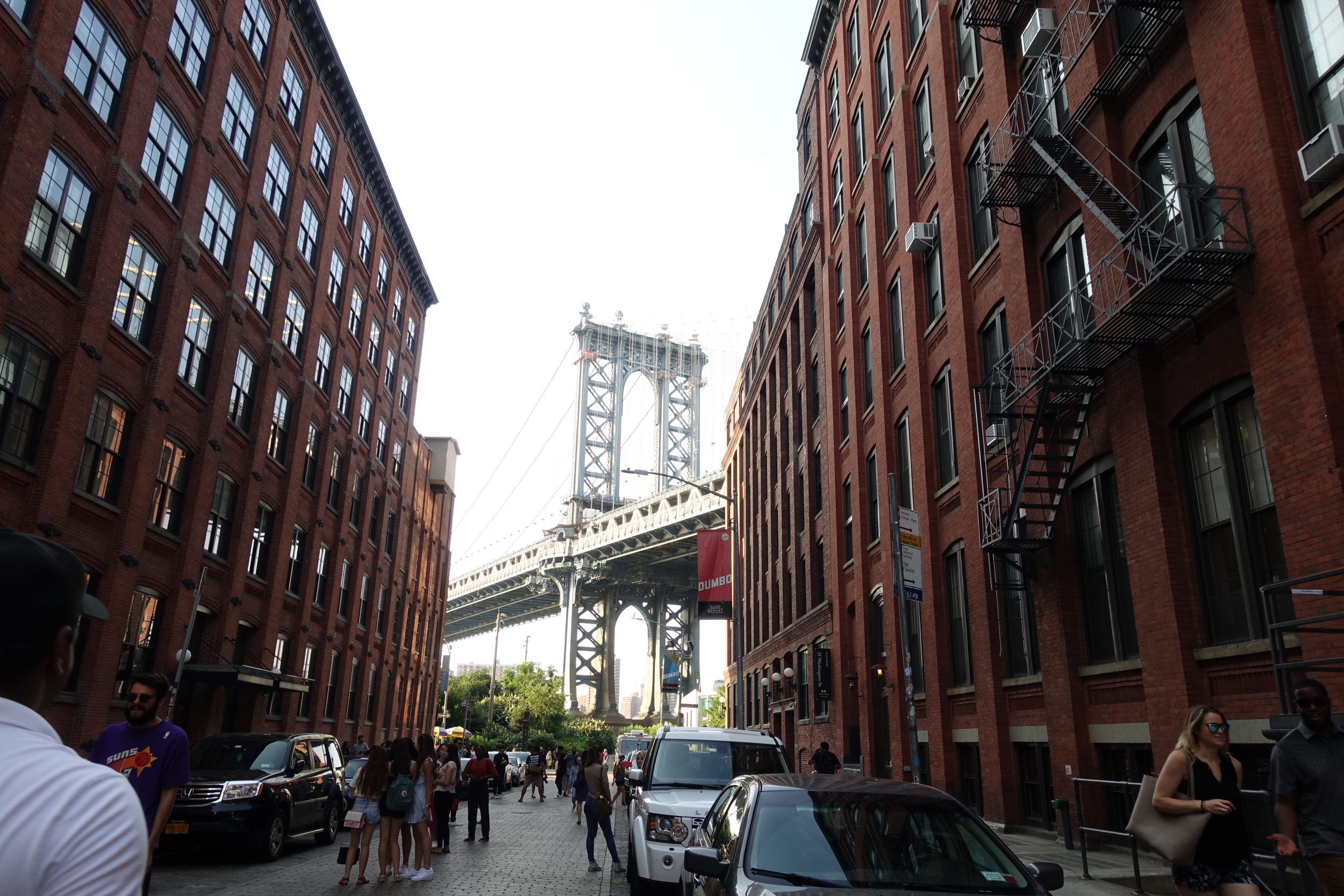 Caminamos un poco y nos encontramos cara a cara con este «trozo» del puente de Manhattan. Este punto de vista es tan conocido (cf. Instagram) y estaba en el cartel de una película creo. De todos modos, está lleno de gente, todo el tiempo, y a los turistas no les importan los coches, posando como profesionales ante el objetivo durante largos minutos, en medio de la carretera.