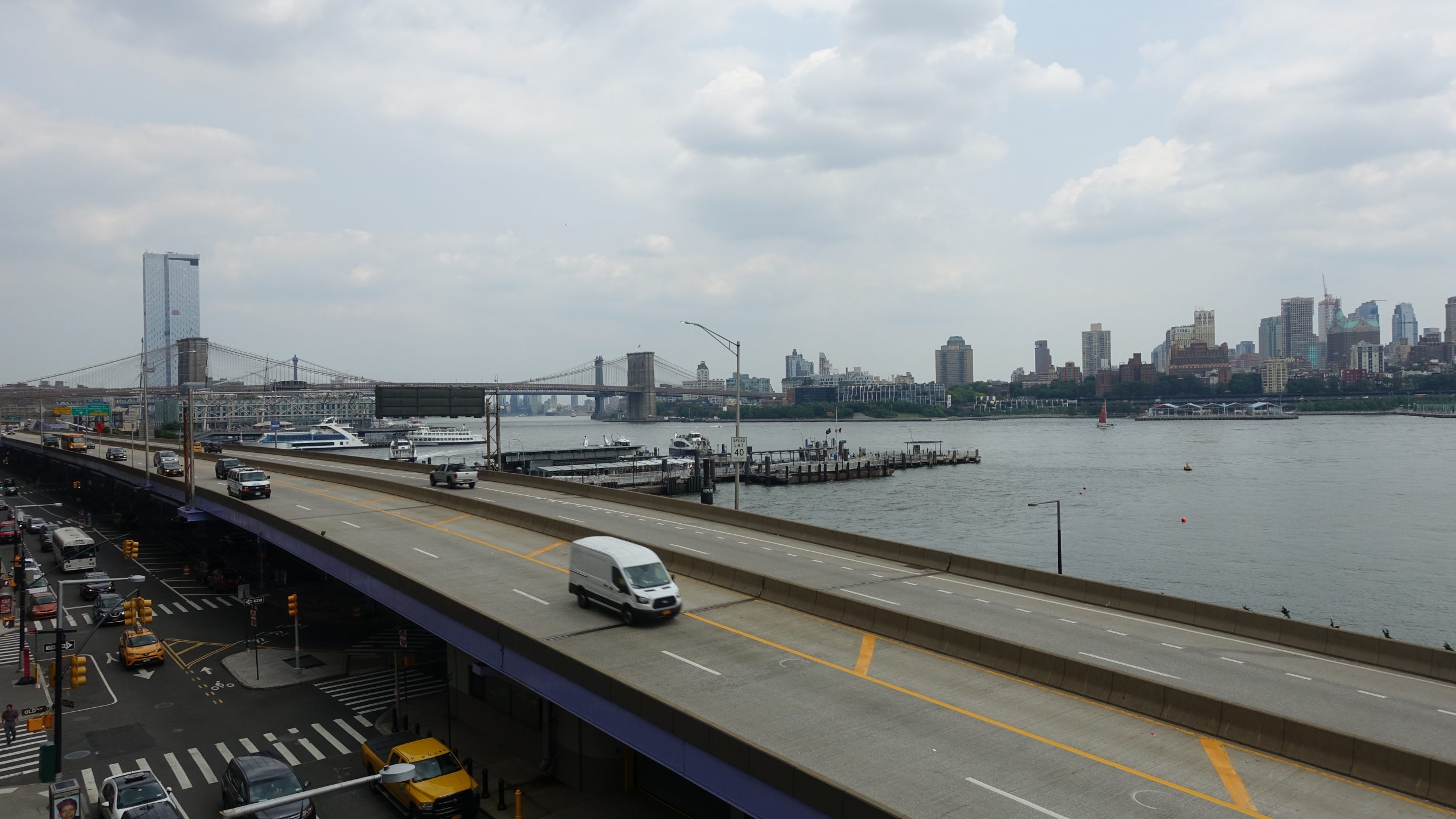 Tenemos vistas a un helipuerto (desde donde hicimos un tour en helicóptero por NYC en 2015) y al puente de Brooklyn.