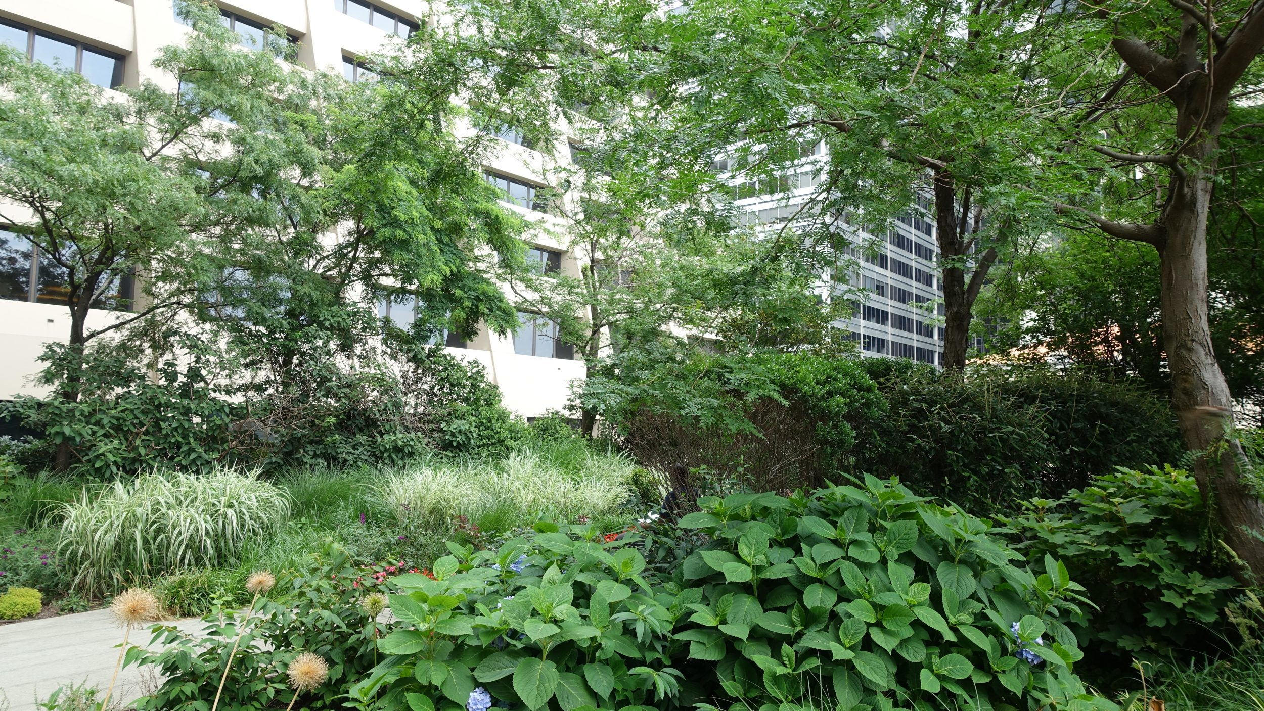 Con nuestros bocadillos, nos dirigimos al Distrito Financiero en busca deElevated Acre, un remanso de paz entre dos rascacielos, al que se accede por una escalera mecánica