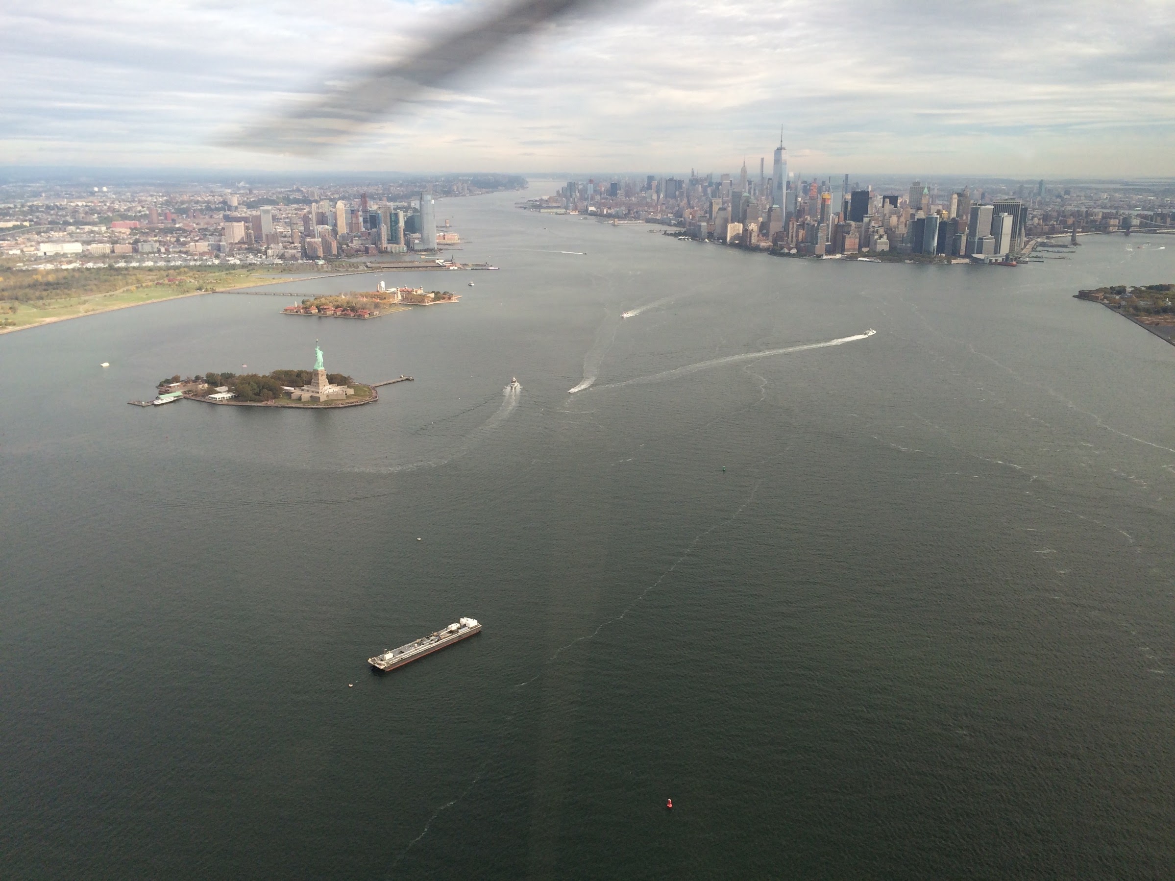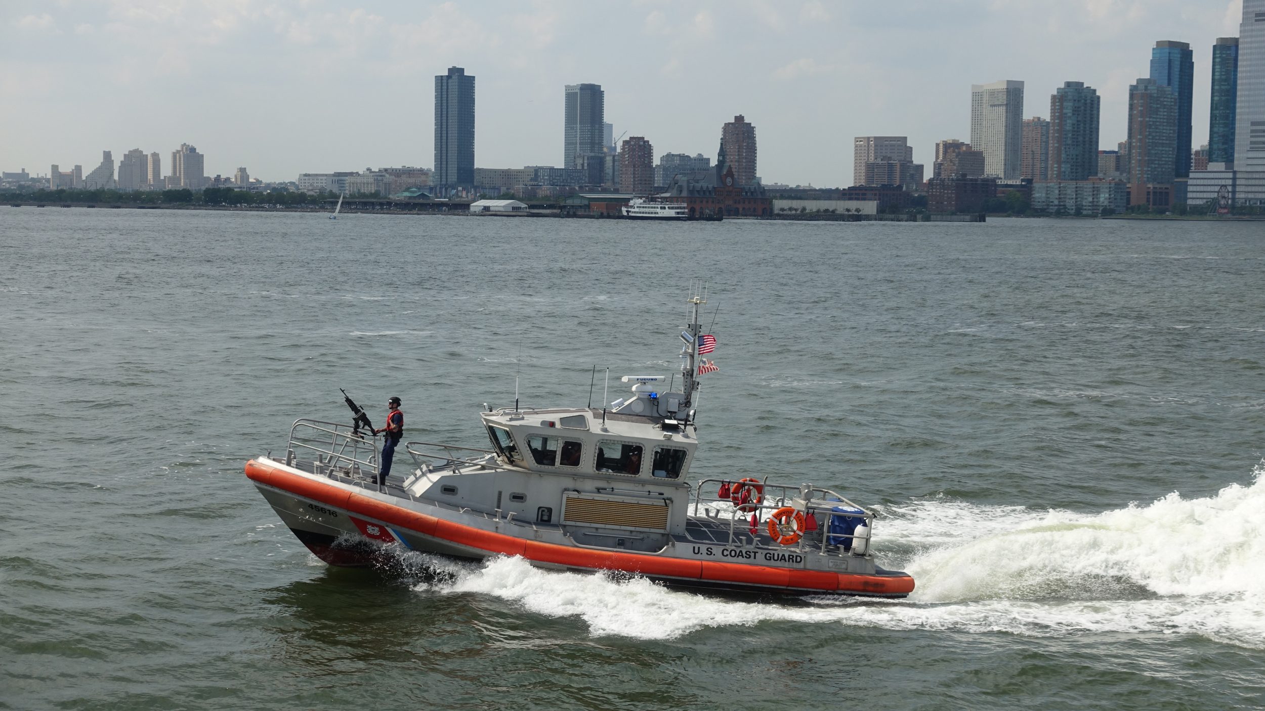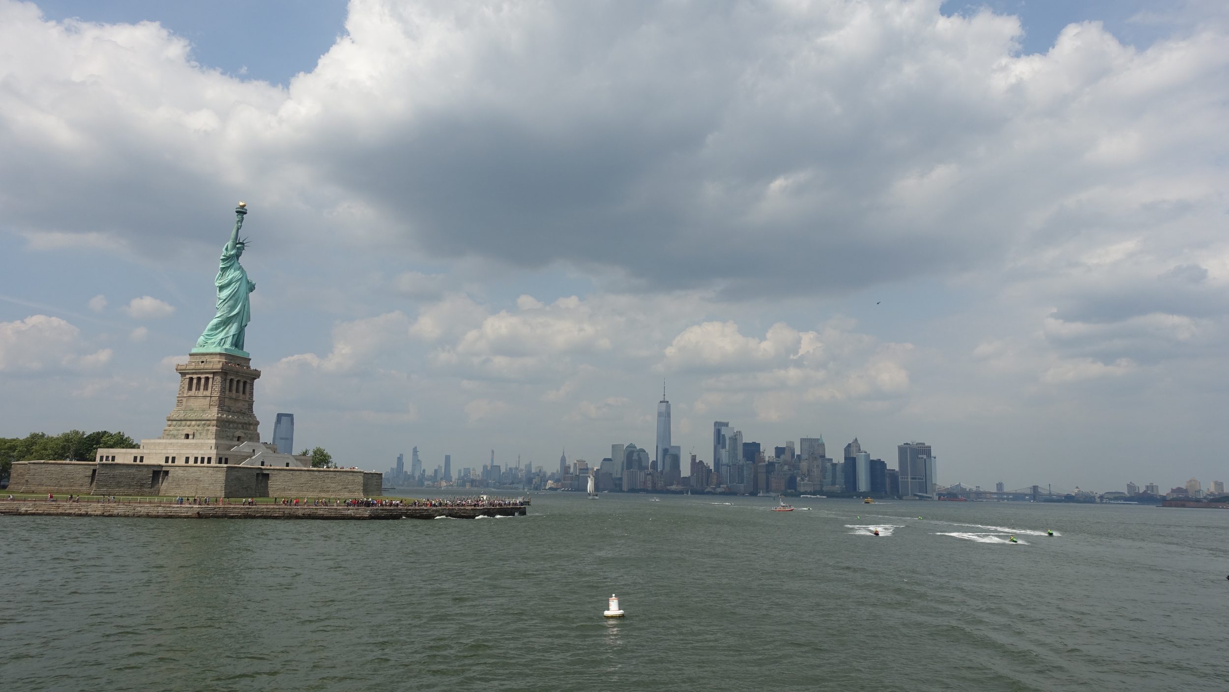 Tomamos el ferry desde Battery Park (18,5 $/persona de memoria) hasta Liberty State Park para ver la Estatua de la Libertad. A veces nos sigue un barco de la Guardia Costera de los Estados Unidos.