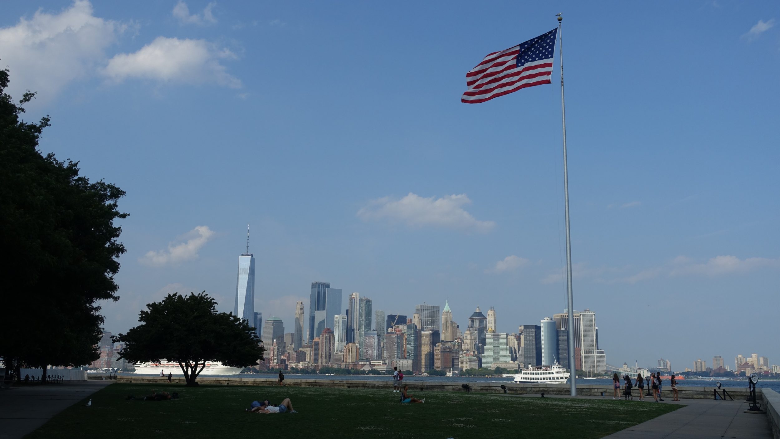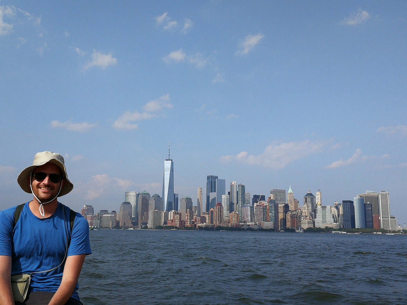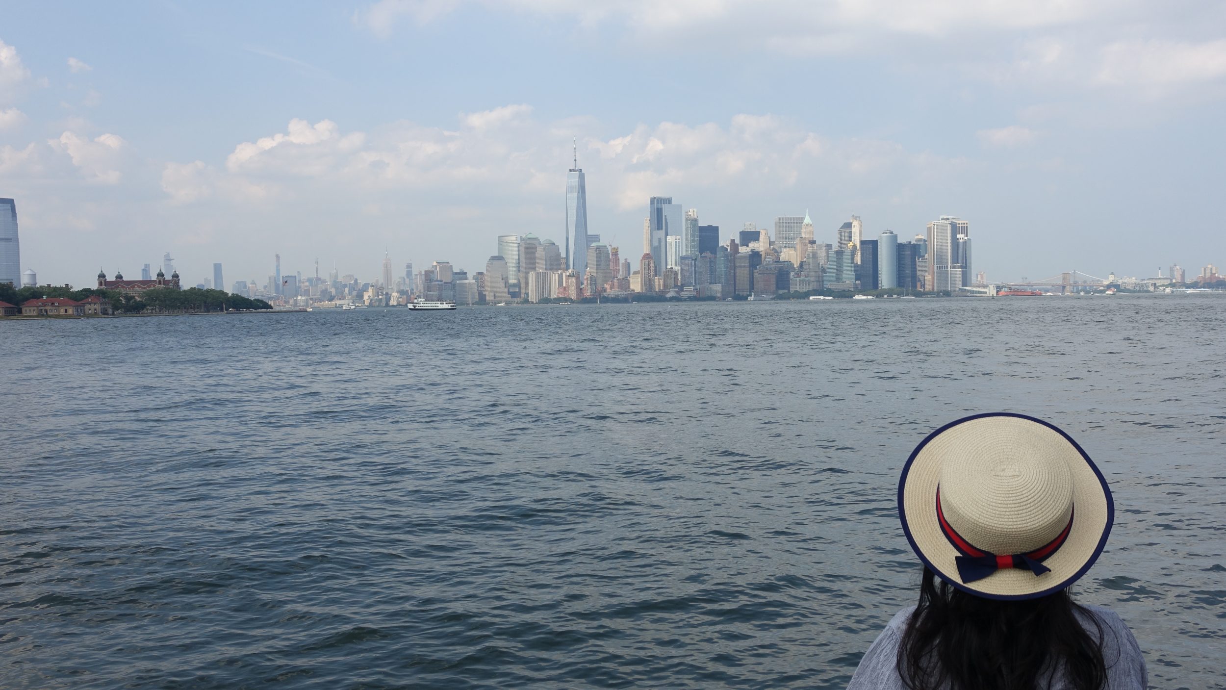 Lavista del horizonte de Nueva York desde Ellis Island es más impresionante que desde State Island. Te recomiendo que te detengas allí sólo por las vistas (el barco se detiene allí durante 5 minutos, pero puedes quedarte todo el tiempo que quieras y coger el siguiente barco).