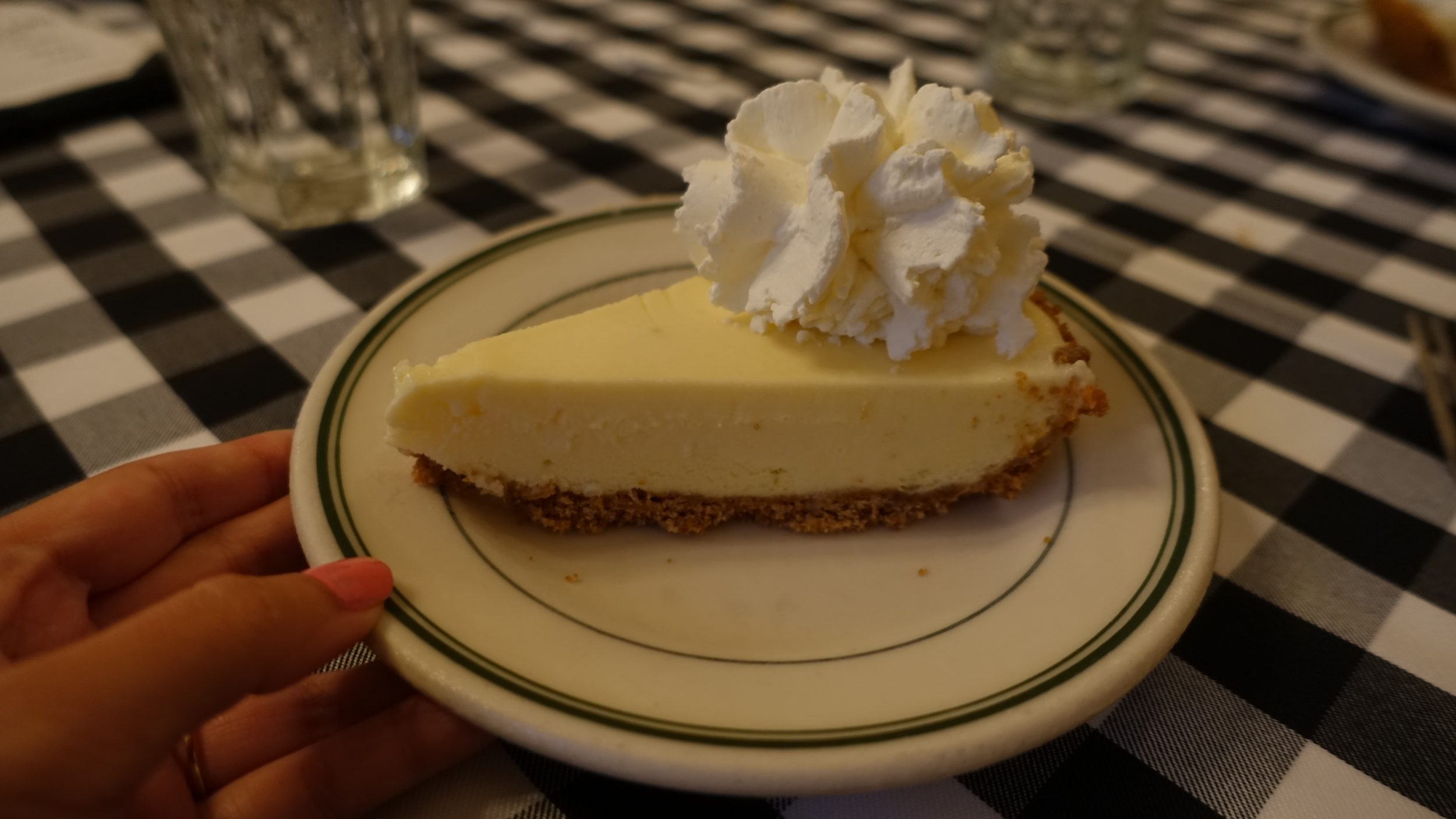La segunda especialidad de este restaurante es la Key Lime Pie, una tarta de limón, enorme y agridulce como debe ser. 10$ el trozo, pero está tan bueno que hay que pedir 1 trozo por persona. Este tipo de pastel se vende en toda Florida, pero según Tripadvisor, es aquí donde debe venir a probarlo.