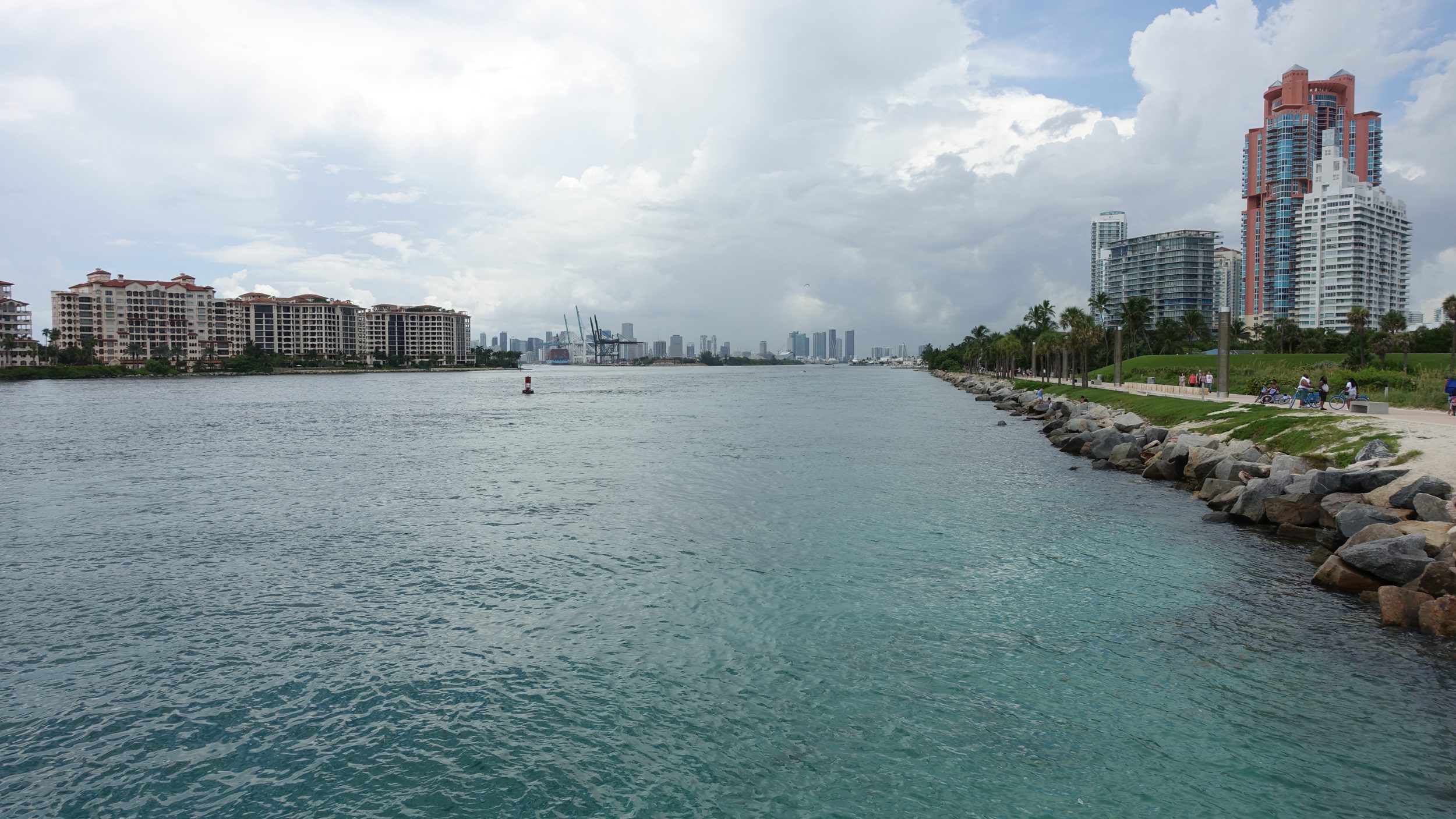Tomamos una CityBike (JB explicó este sistema equivalente al Velib aquí) para llegar al muelle de South Pointe Park, probablemente el mejor lugar para nadar en Miami Beach. A diferencia de otros lugares, el agua está casi libre de algas, la arena es blanca y fina; es muy agradable.