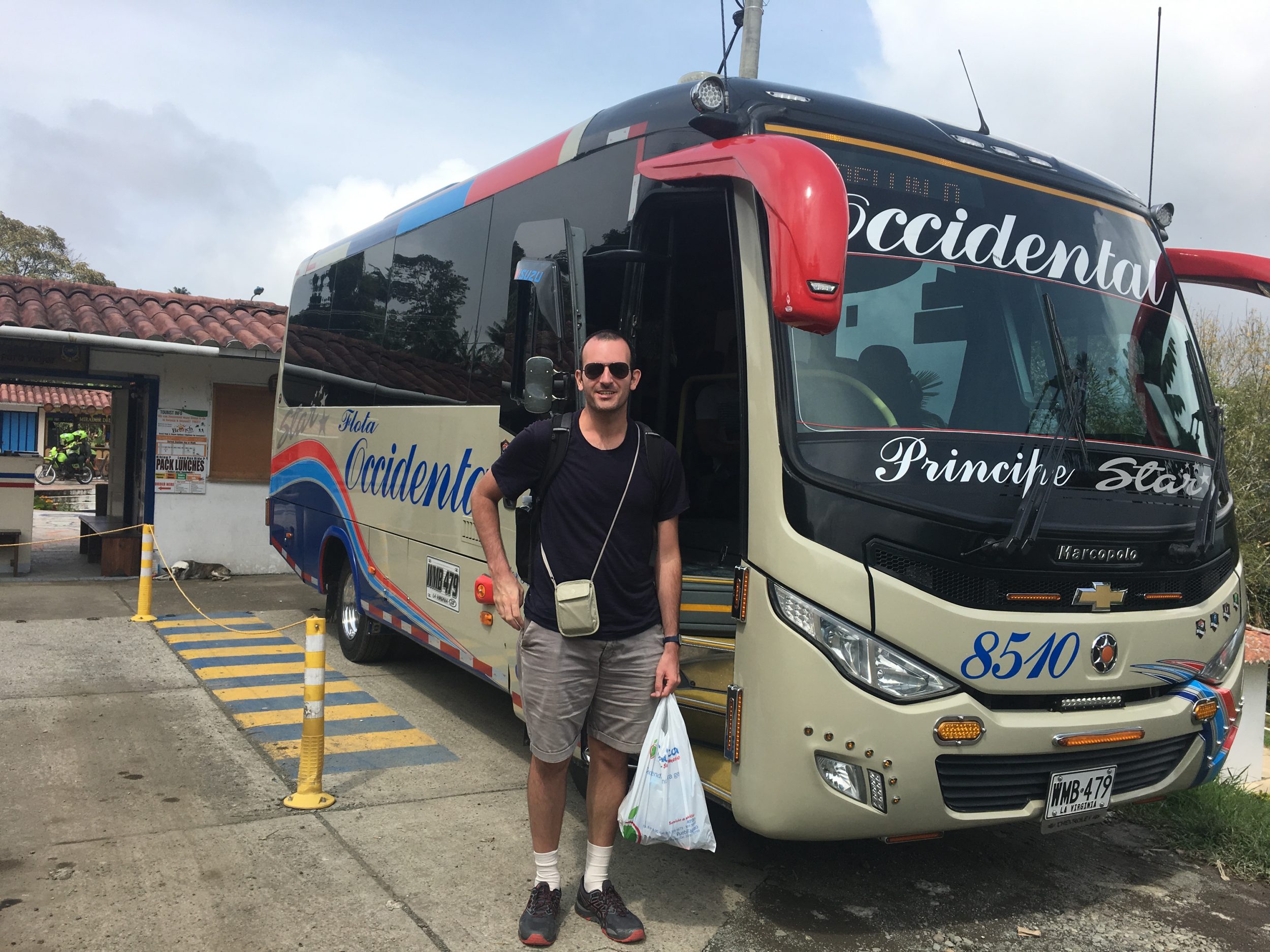 Hace una parada de unos 15 minutos en Pereira, y luego otra parada en medio de la nada para comer. El autobús está equipado con aseos, enchufe USB y cargador (Wifi muy bajo por otra parte) e incluso una pantalla personal como en los aviones. En Medellín, se detendrá en la estación de metro Sabaneta (le aconsejamos que se detenga aquí), y luego en la Terminal del Sur. Duración del viaje: 8 horas debido a las obras (en septiembre de 2019), 6 horas en horario normal. El viaje lo realiza la empresa Flota Occidental (los billetes se pueden comprar por Internet).