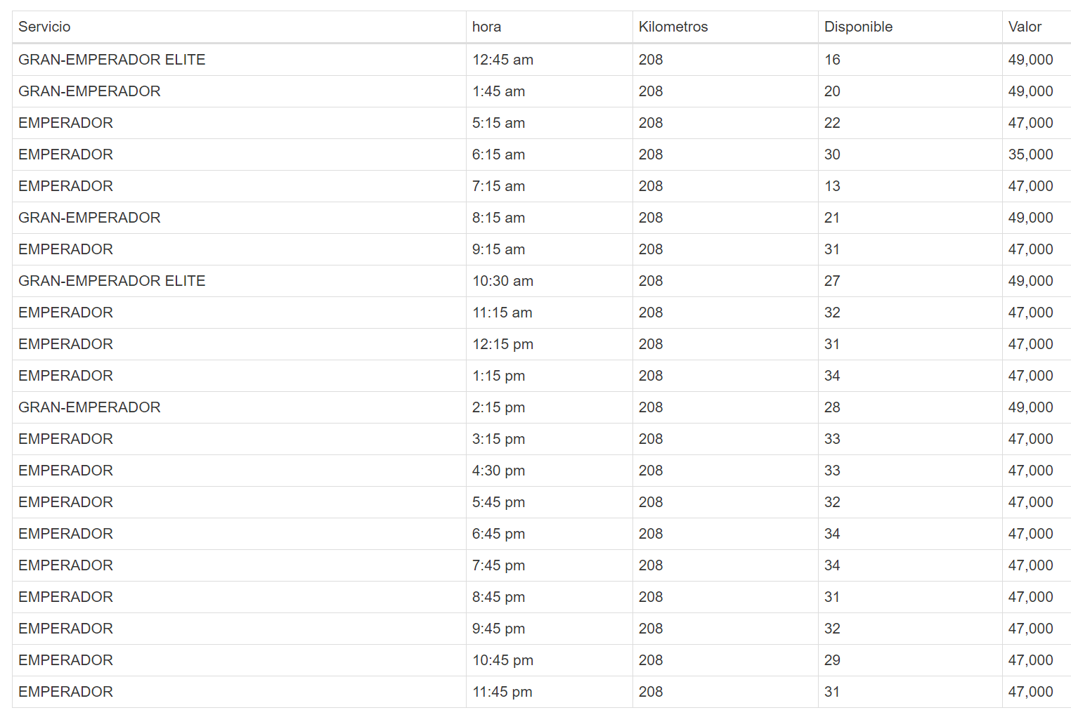 lunes a sábado: cada hora desde las 5:30 hasta las 17:30, último autobús a las 18:50Domingo
