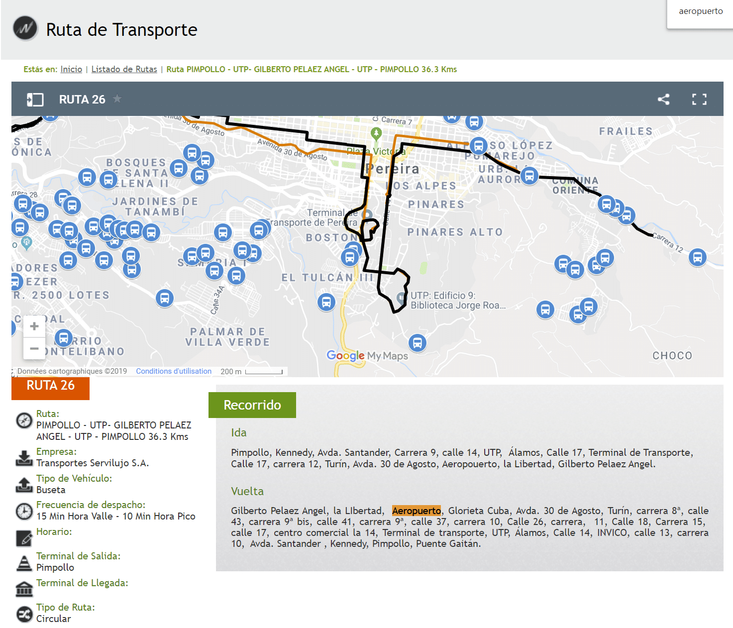 Paso 1: Aeropuerto de Pereira => Terminal de Transportes de Pereira