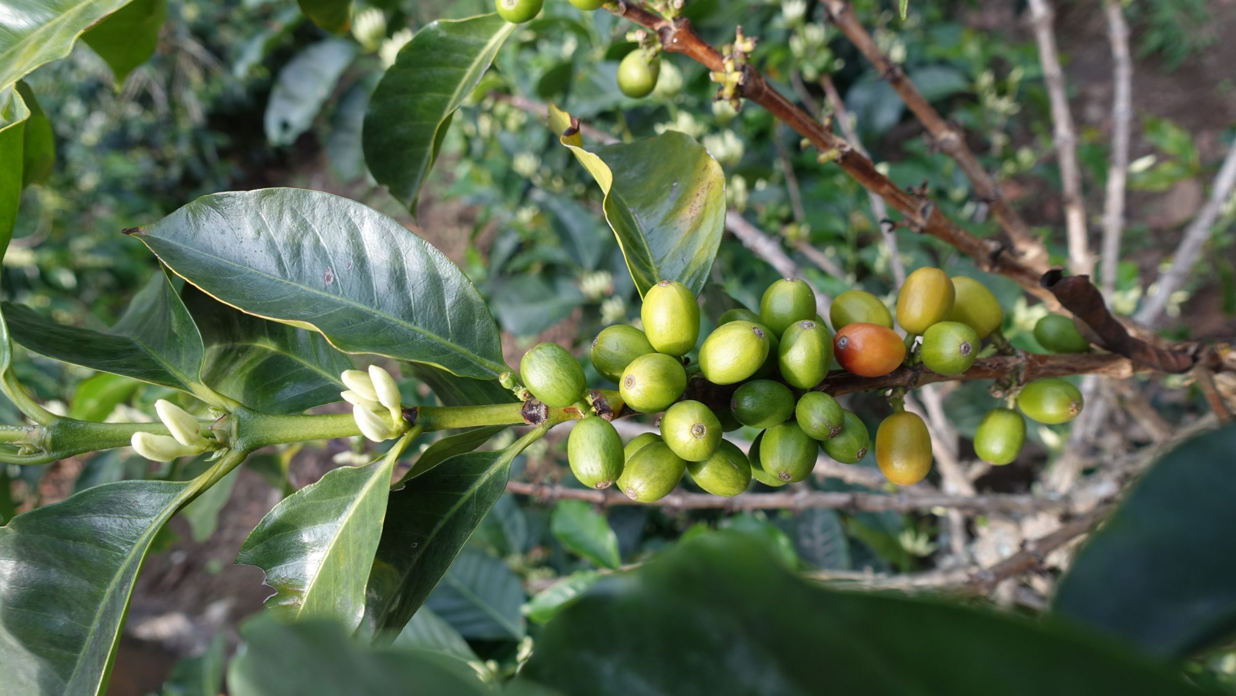 Luego vienen las plantas de café (sólo arábica). Se necesitan al menos 3,5 años para tener una buena cosecha, por eso las explotaciones se transmiten de generación en generación
