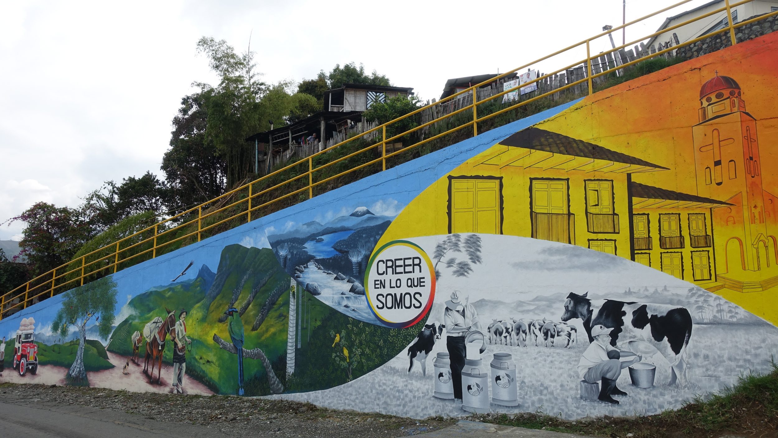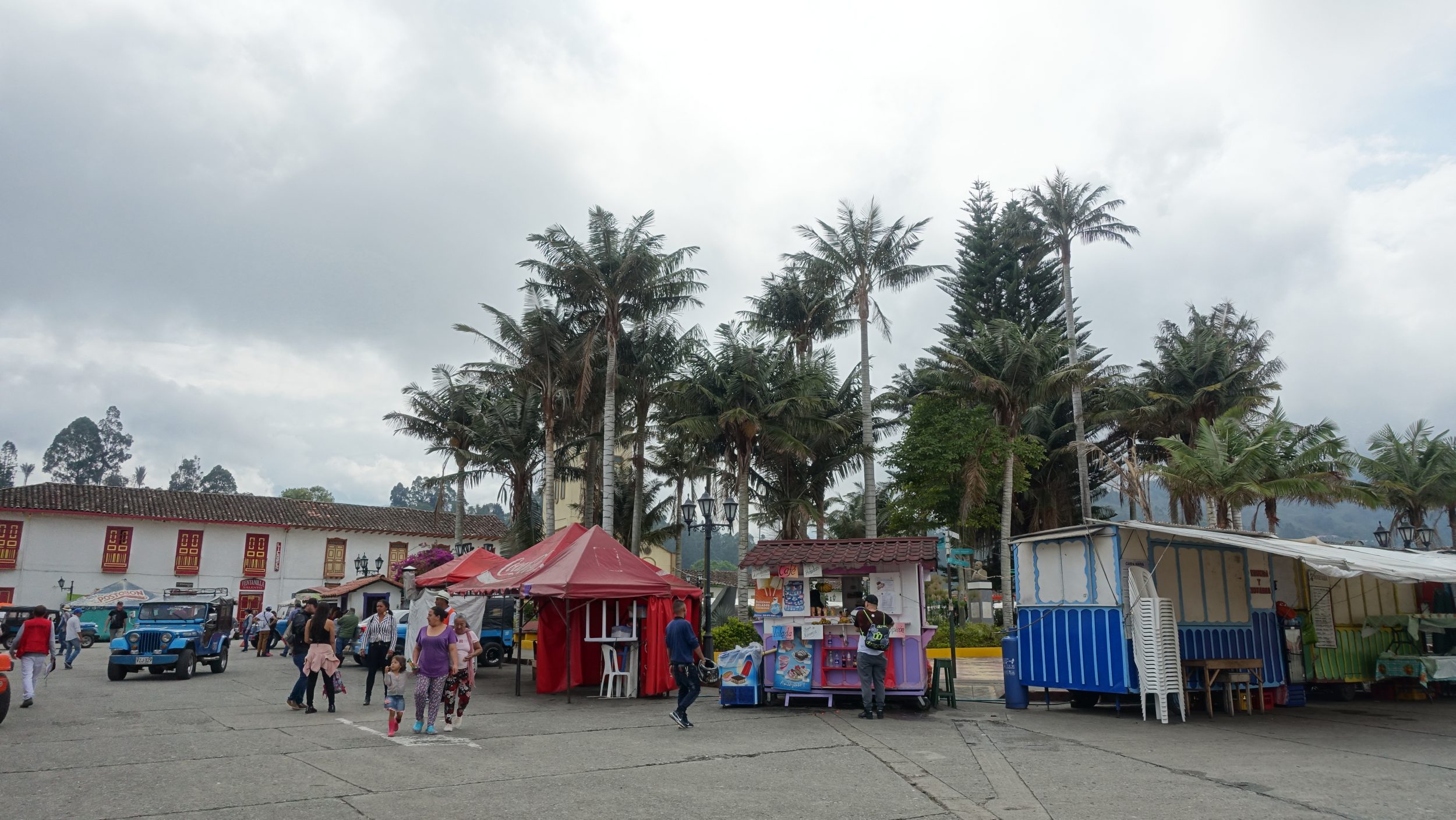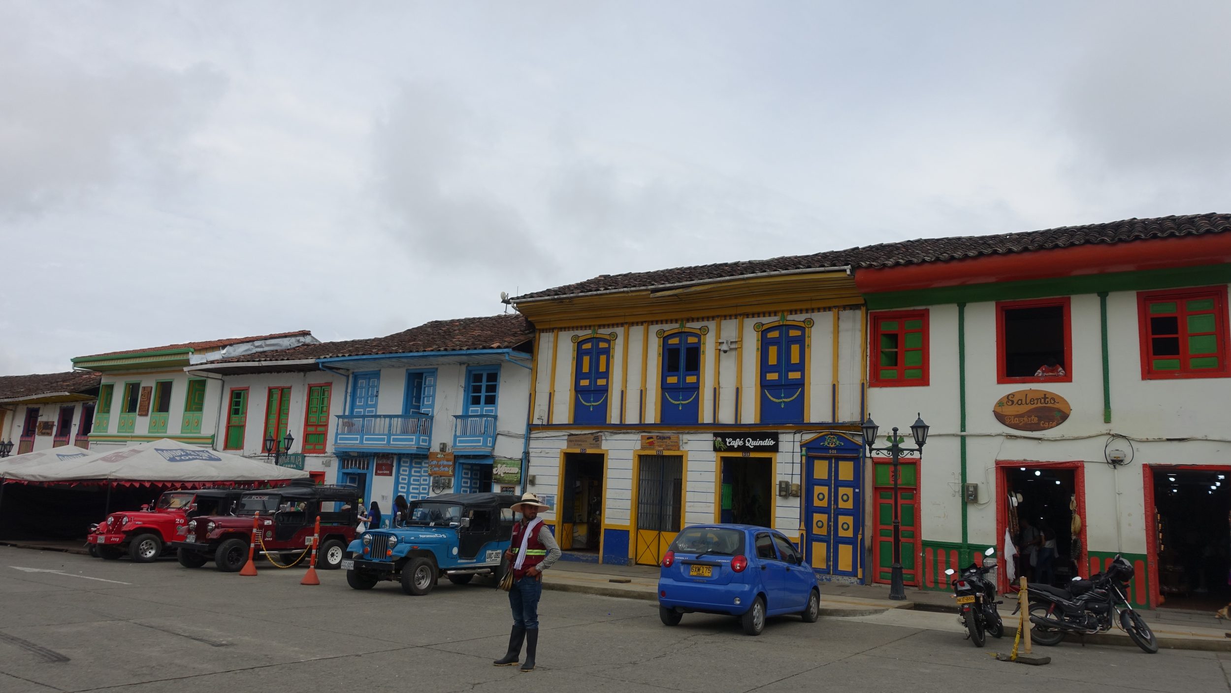 Visitamos rápidamente Salento porque al final sólo visitamos sus alrededores, pero no la ciudad en sí. Es domingo y ya hay muchos turistas de Armenia. Muchos van a la torre de vigilancia (+200 escalones), luego van al valle de Cocora.