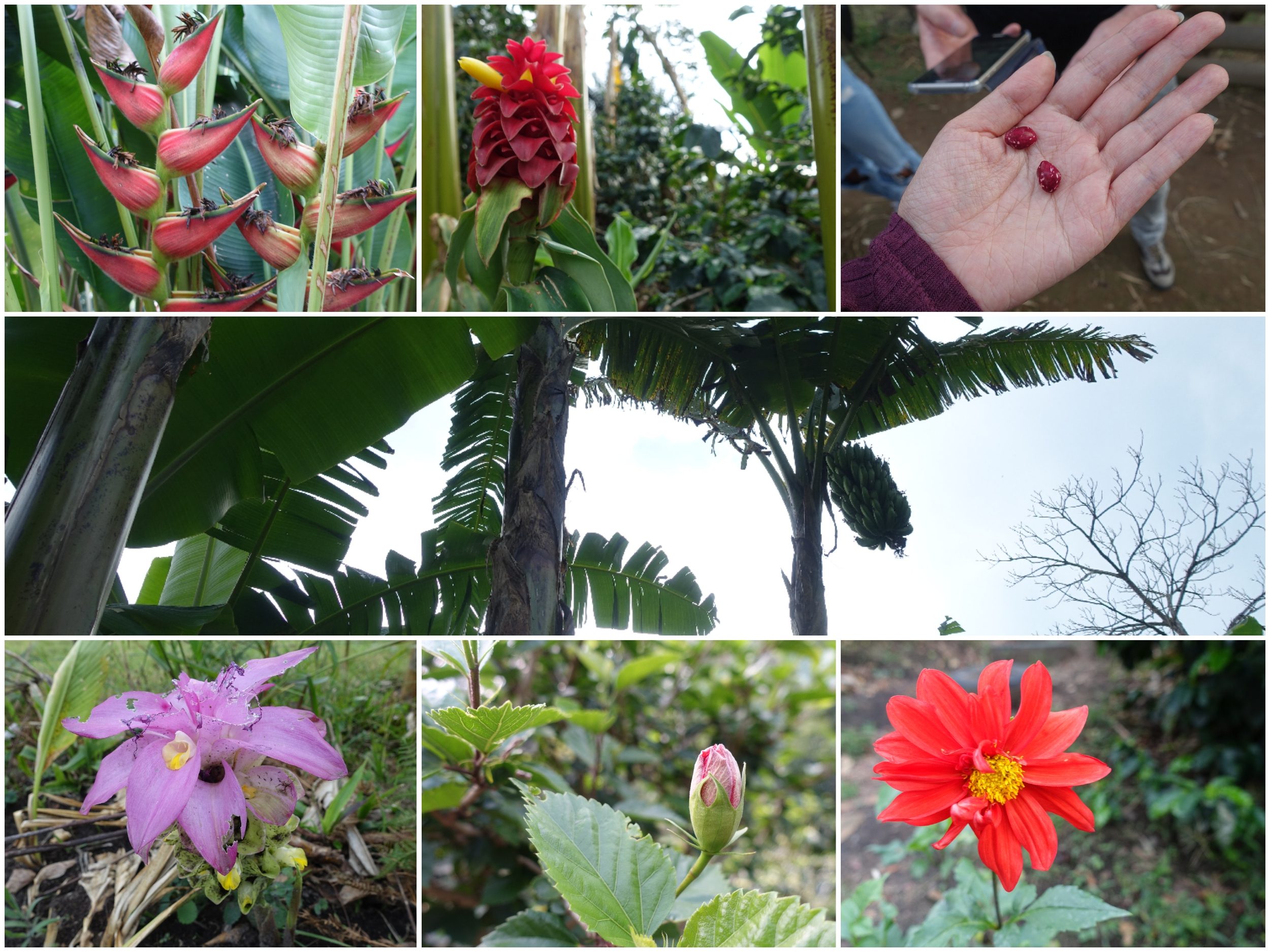 En esta explotación, después de 5 años se podan las plantas (si no, ya no producen semillas), y después de 15 años se sustituyen. Los plátanos se plantan entre los cafetos, para dar sombra a los agricultores y agua a las plantas.