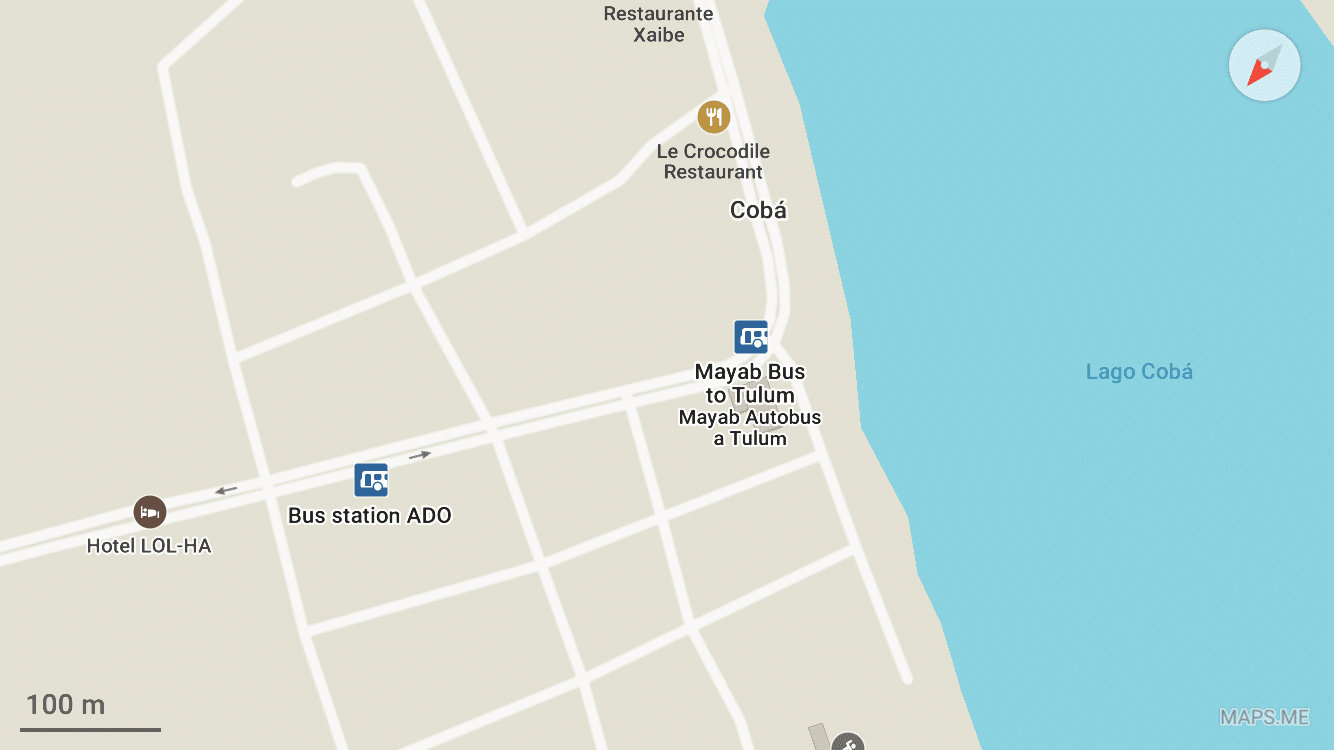 ver la parte práctica. Tomamos un autobús de Oriente por 51MXN/persona. Hay que seguir la ruta y estar en el lado derecho del autobús porque el conductor no anuncia la parada en Coba. En cuanto veas un lago, bájate.