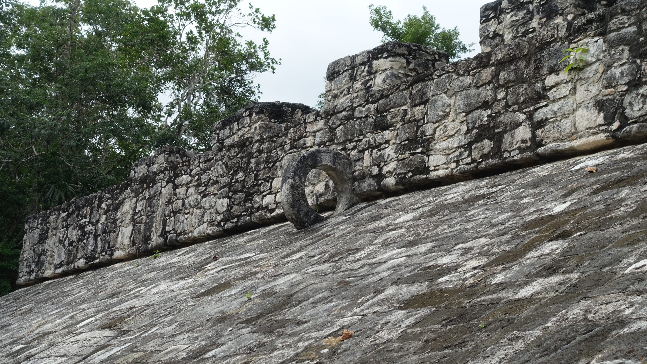 …excepto este juego de pelota (pelota), mucho más pequeño que en Chichen Itza, pero que está muy bien conservado. Después de visitar las otras ruinas, me doy cuenta de que es muy difícil tener un juego de pelota intacto como éste. En la mayoría de los sitios, el círculo que se ve en las fotos suele ser destruido o robado.