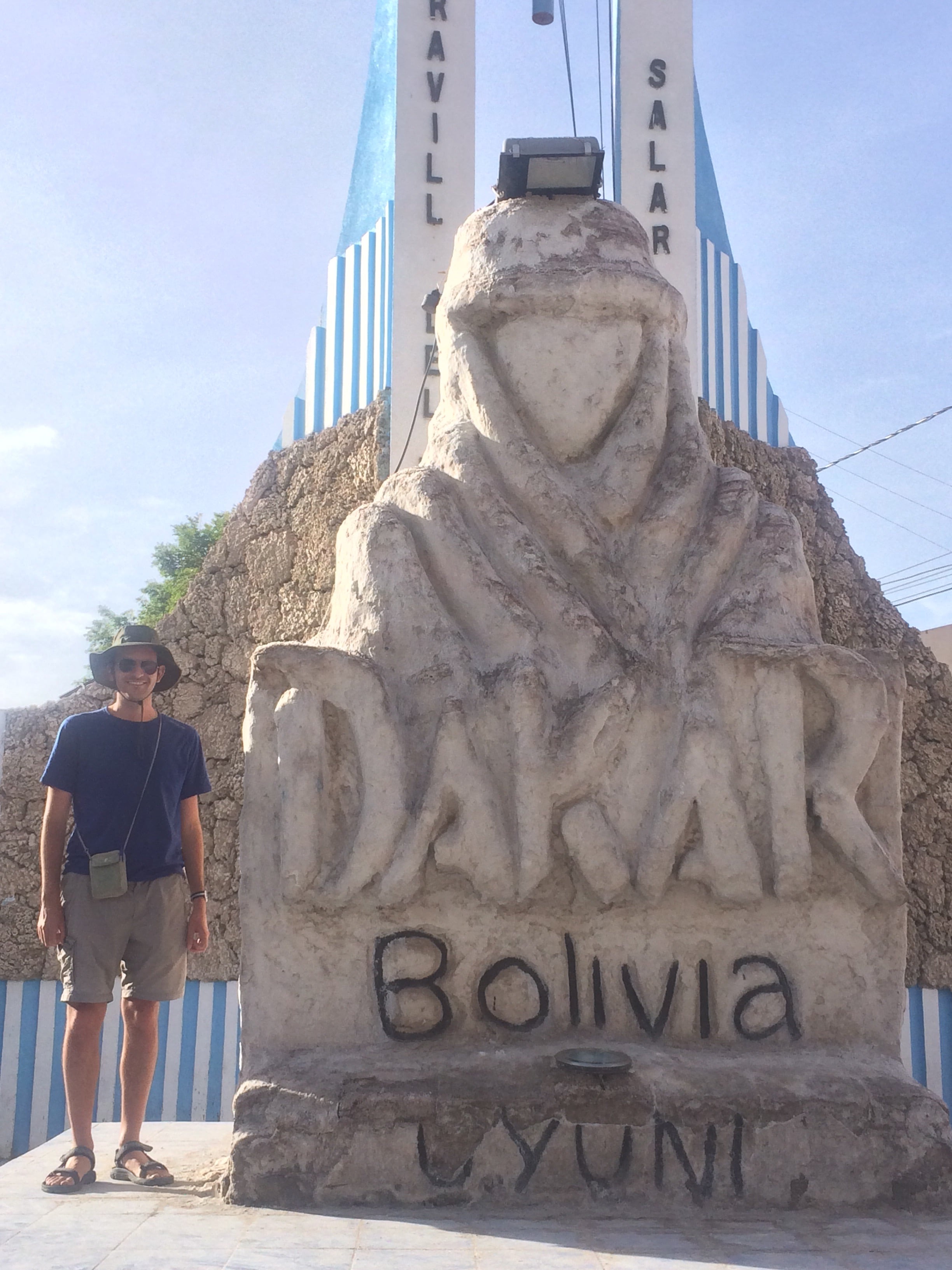 Mala suerte, nos perdimos el Dakar por 5 días. Al mismo tiempo, probablemente no habríamos encontrado alojamiento si hubiéramos estado allí en el momento adecuado. Por cierto, la estatua junto a JB está hecha de sal.