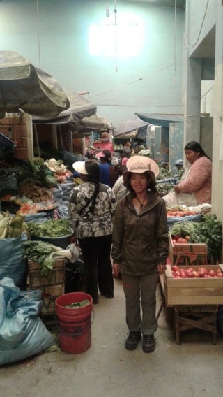 Descubriremos el sorprendentemente limpio mercado local, con puestos de fruta, carnicería (incluso veremos la cabeza de un lama cortada, pero sonriendo arhgg) y bui bui.