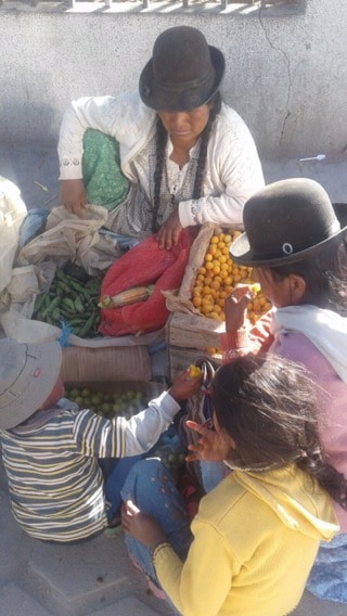 ¿Ves cómo me derrito? 🙂 Hace mucho calor fuera, pero me cubro como las mujeres bolivianas.