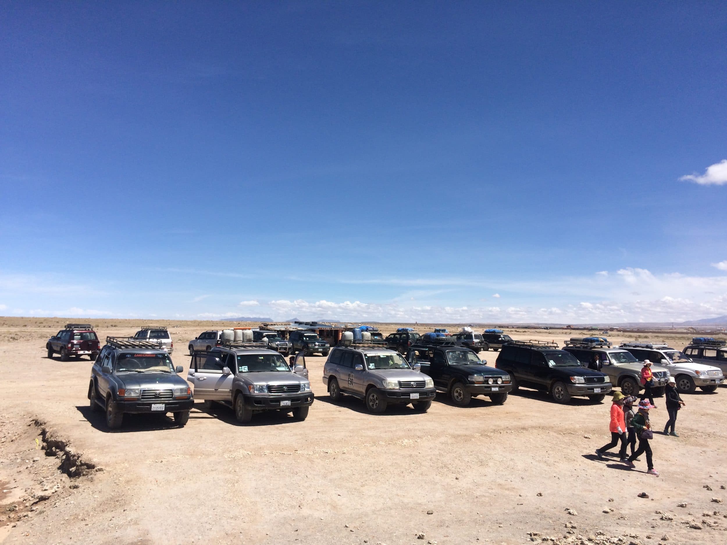 Los jeeps con mucho equipaje en el techo son los que salen durante 3-4 días. Los que no tienen equipaje son los que, como nosotros, sólo pasan un día en el desierto de sal. Estamos en minoría