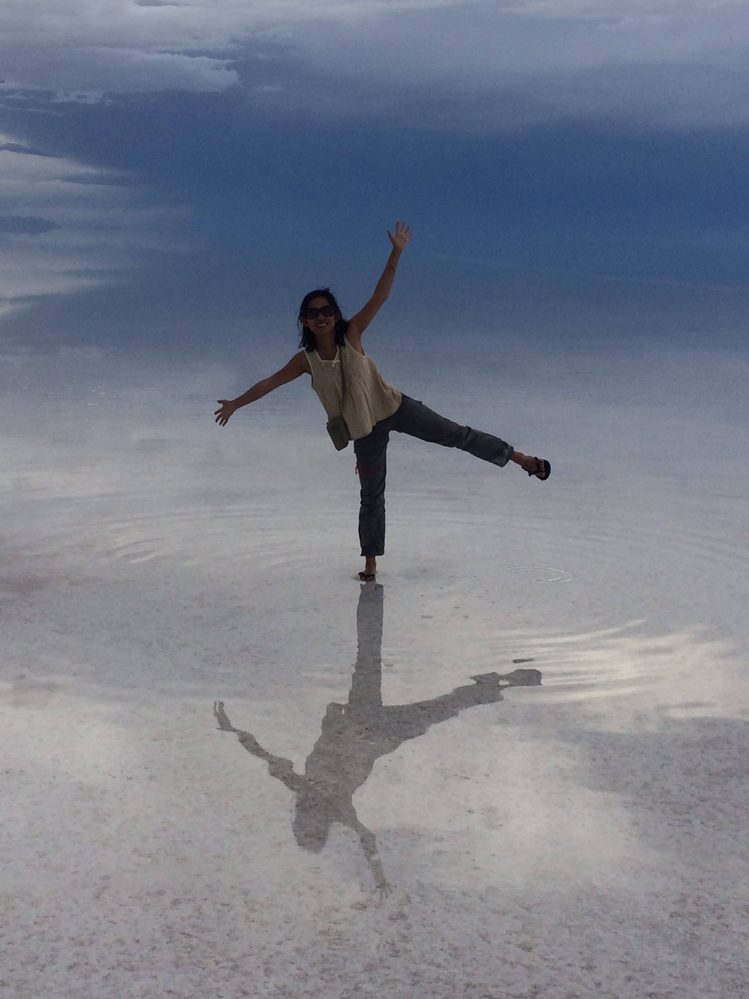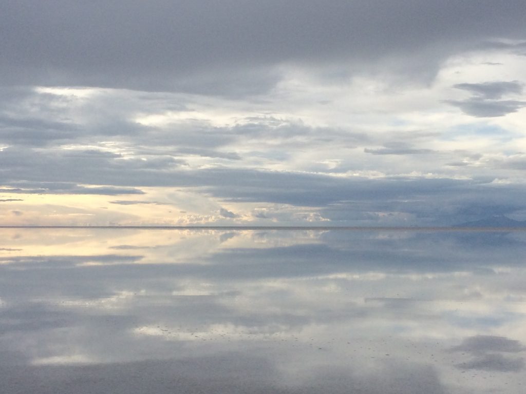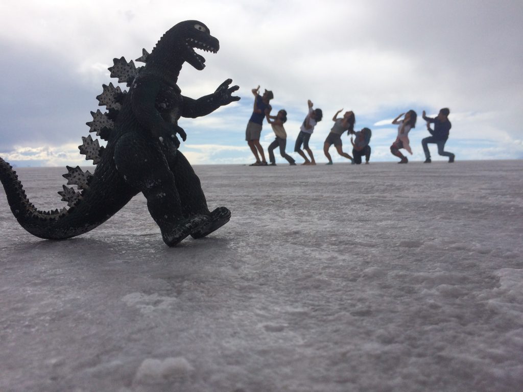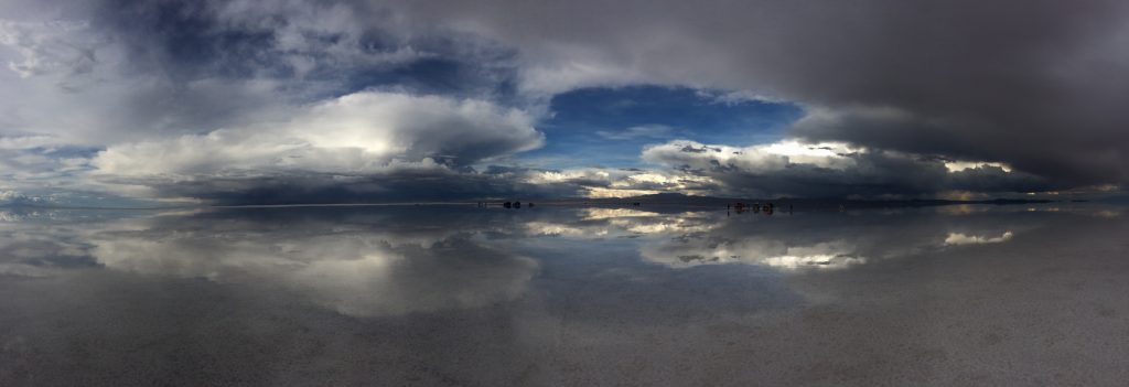 Siempre supimos que teníamos que venir aquí a mediados de enero, cuando el salar está inundado pero la lluvia es sólo temporal. Porque visitar el salar cuando llueve seguro que no es una experiencia agradable, cuando sabemos que el juego favorito de los turistas en el salar es hacerse fotos jugando con las perspectivas. Hay comentarios contradictorios sobre visitar el salar entre diciembre (cuando no es seguro que llueva) y febrero (cuando podría llover demasiado), así que para estar tranquilos, cortamos la pera por la mitad y marcamos en nuestra agenda, en cuanto se establezca el itinerario de la vuelta al mundo, que visitaremos el salar a mediados de enero. El azar ha querido que lo visitemos el 15 de enero de 2017!