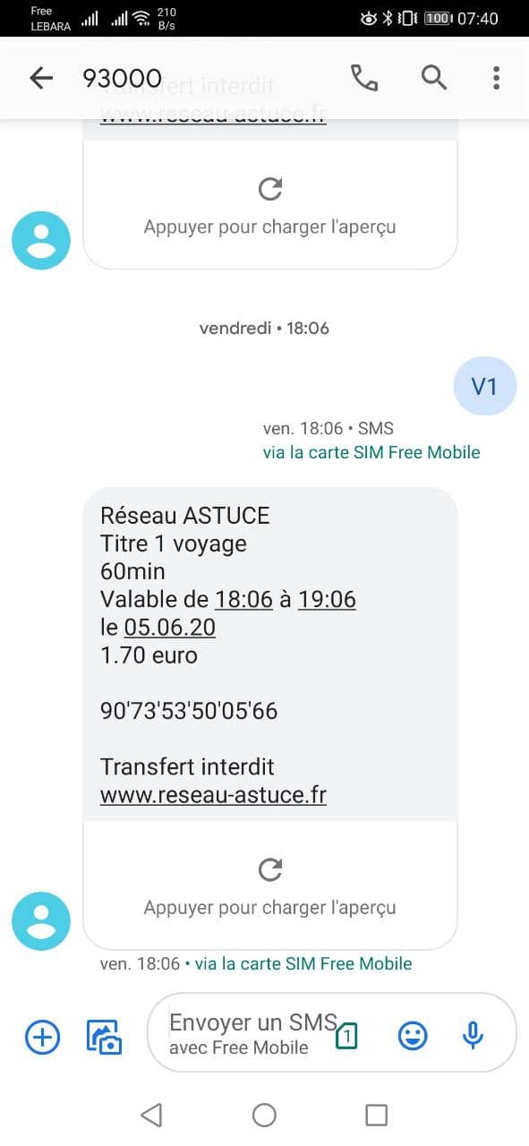 Al instante de enviar su SMS, recibirá a cambio un SMS que le permitirá justificar su billete en caso de control.