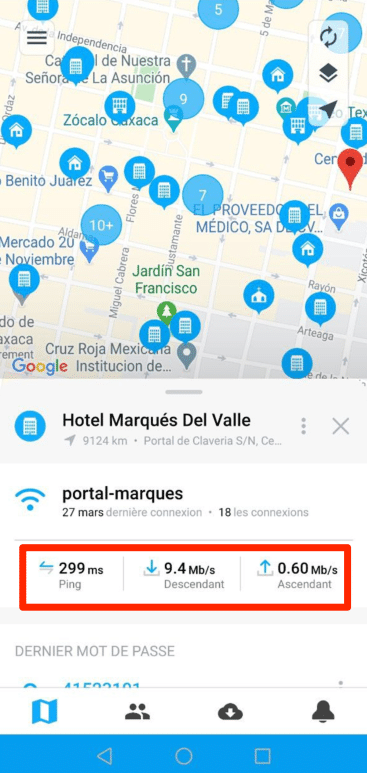 Cuando usas Wifi Map para conectarte al wifi en un lugar, la aplicación te ofrece hacer un test de velocidad. Y los resultados están disponibles en la aplicación!