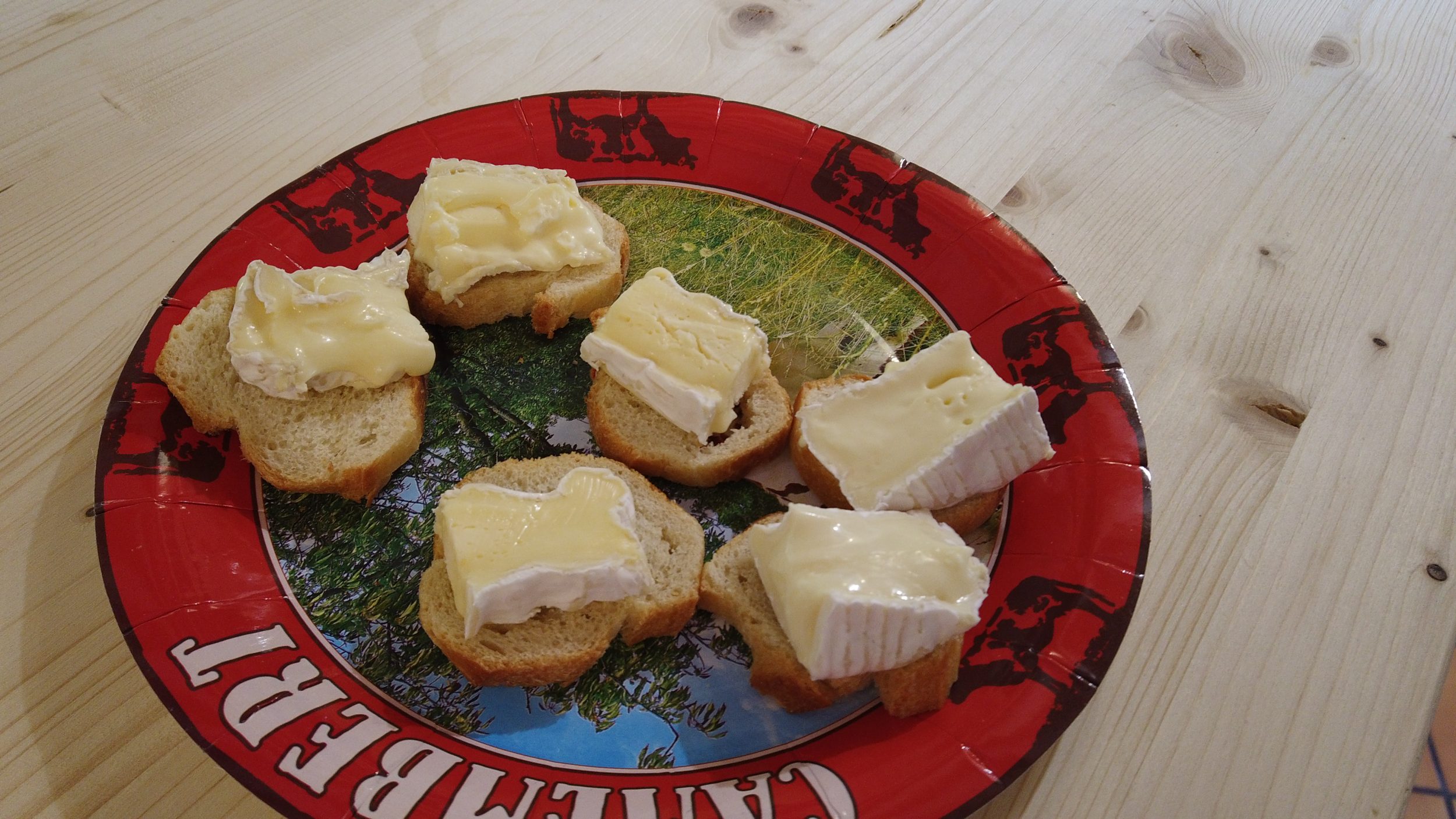 Con nuestros tickets de visita, tenemos derecho a una degustación de 3 tipos de camemberts, desde el menos fuerte hasta el más fuerte. Incluso para mí, que no me gusta mucho el queso, los encuentro súper súper buenos!