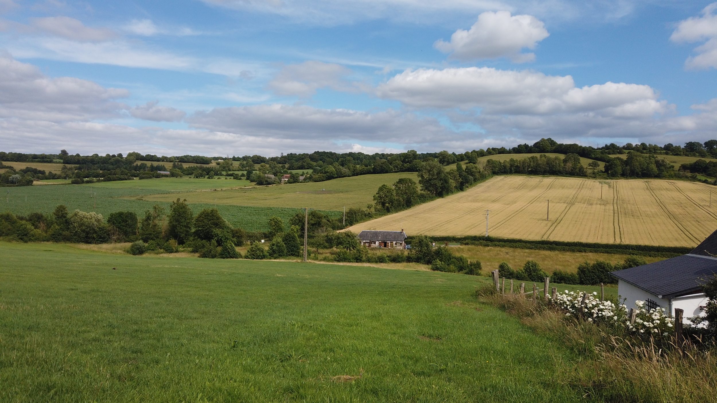 Pequeña pausa fotográfica entre dos pueblos. ¡Mira este hermoso paisaje! Durante todo el fin de semana, podremos ver estos magníficos paisajes por todas partes. La foto fue tomada cerca del Memorial de Montormel por si te interesa 🙂 A pesar del tiempo nublado, pasamos entre las gotas y todavía tiene algunos relámpagos aquí y allá.