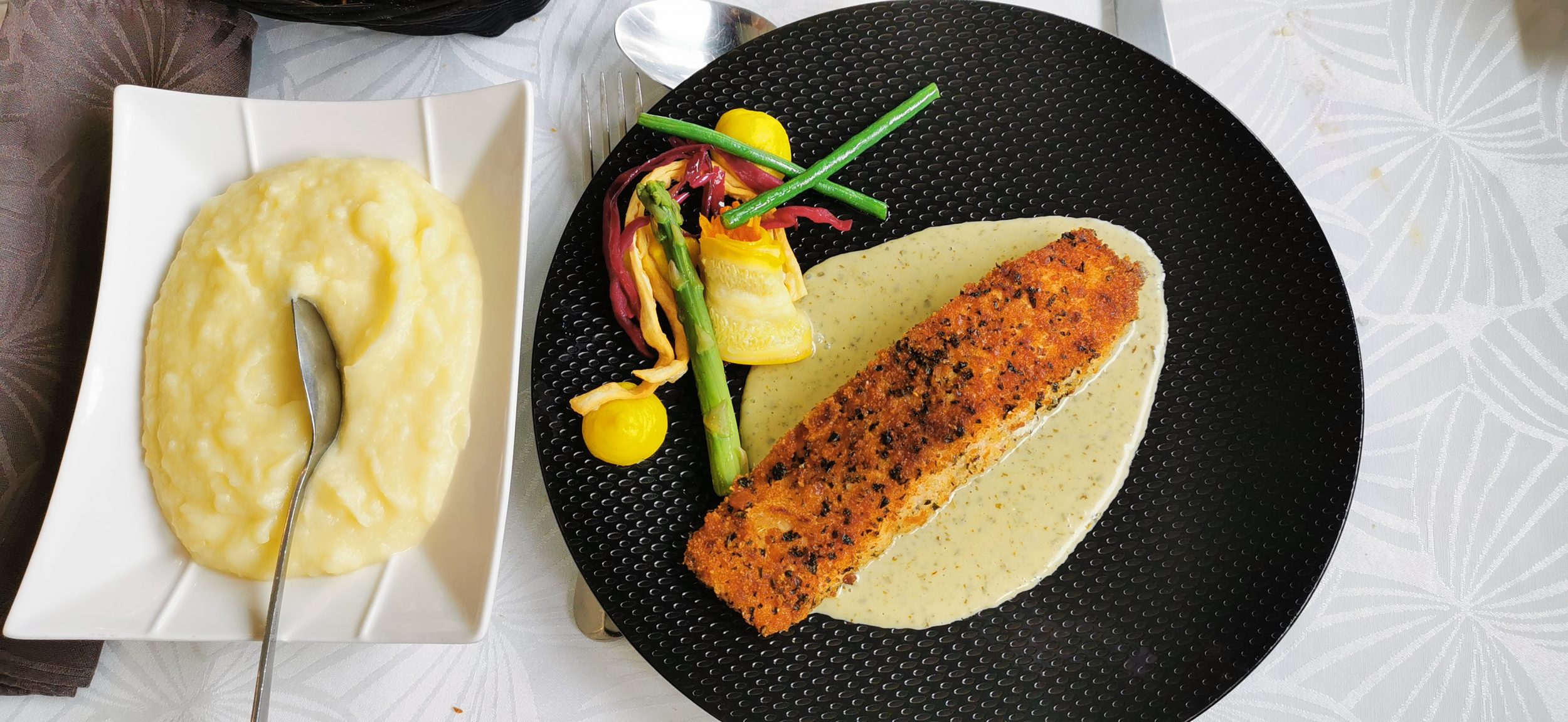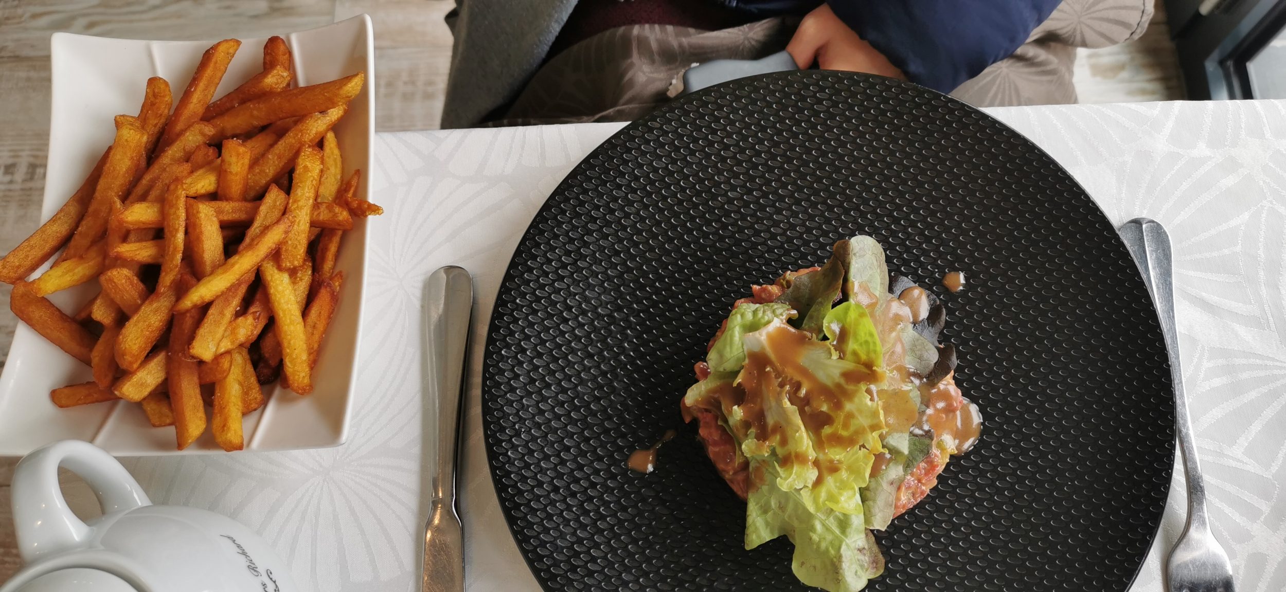 Siempre puedes contar con mi olfato para encontrar un buen restaurante, aunque no te garantice el precio jajaja. Por suerte, llegamos a tiempo para sentarnos en la última mesa disponible para dos, el restaurante está a 20mn en coche de la abadía (en Duclair). El propietario tuvo que rechazar a muchos otros clientes después, así que recuerda hacer una reserva. Así que si la abadía estuviera abierta, no habríamos podido comer en un restaurante tan bueno.